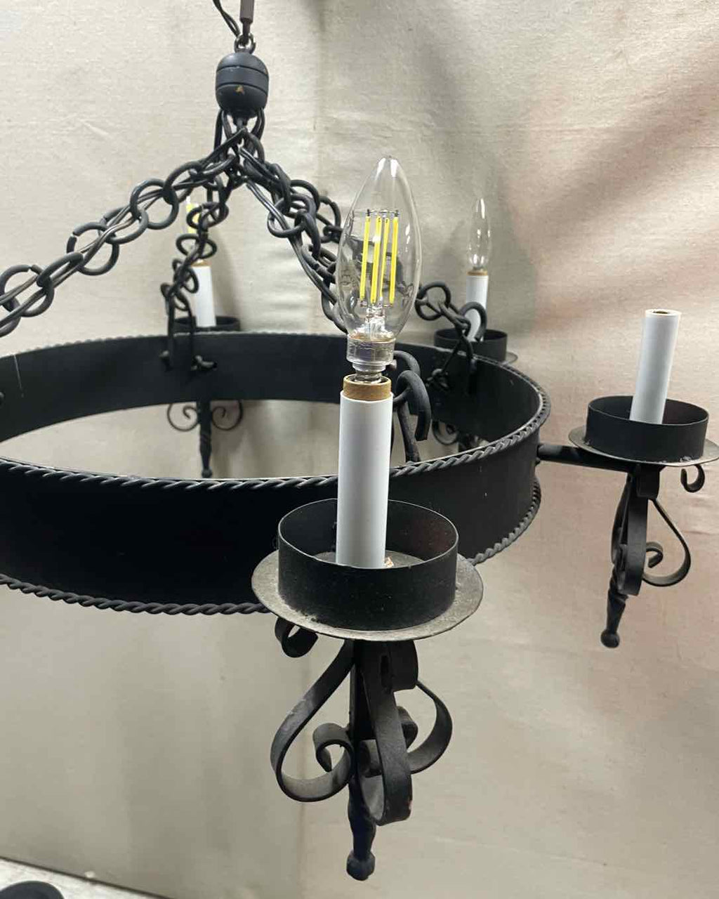 Black Iron Chandelier w/ Rope Trim - 6 Lights - 29" Wide