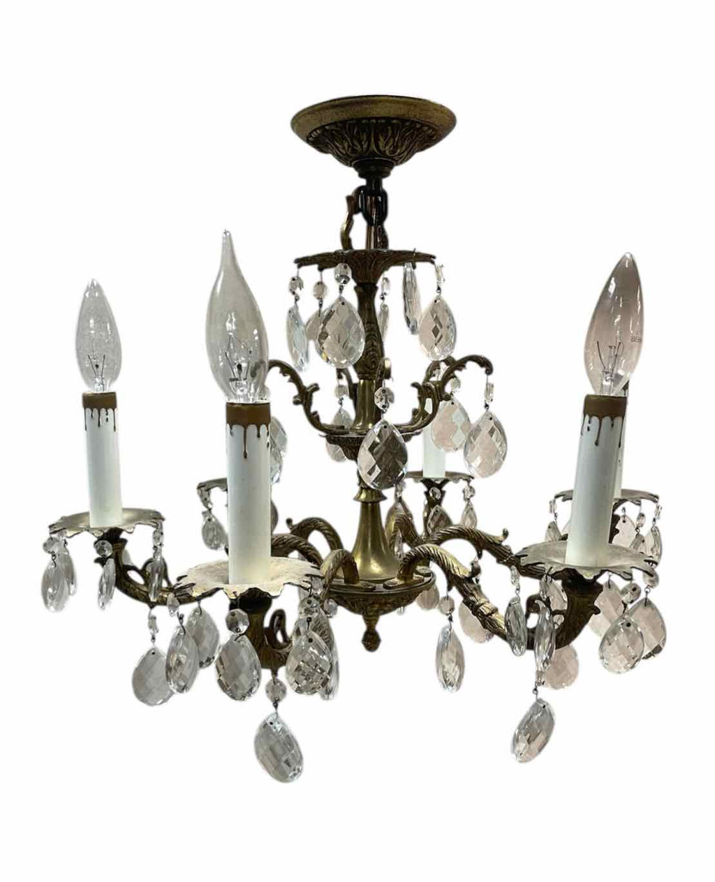Brass 6-Light Chandelier w/ Crystals - 19" Wide