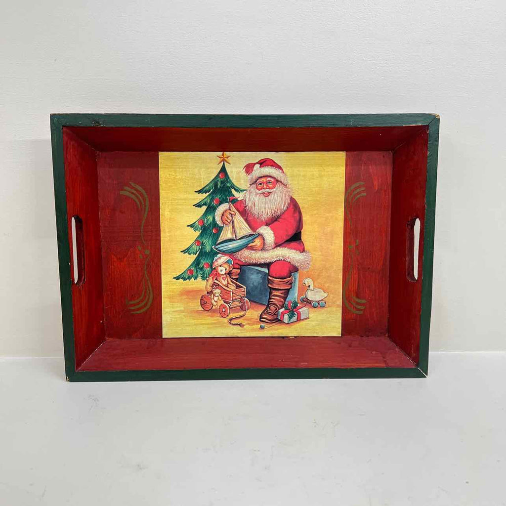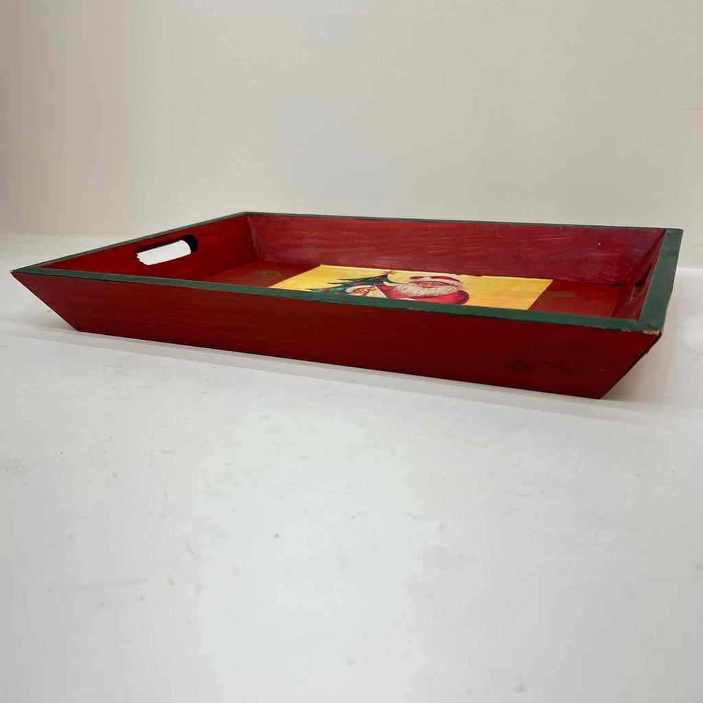 Red Wood Tray w/ Handles - Santa - 16" x 11.5