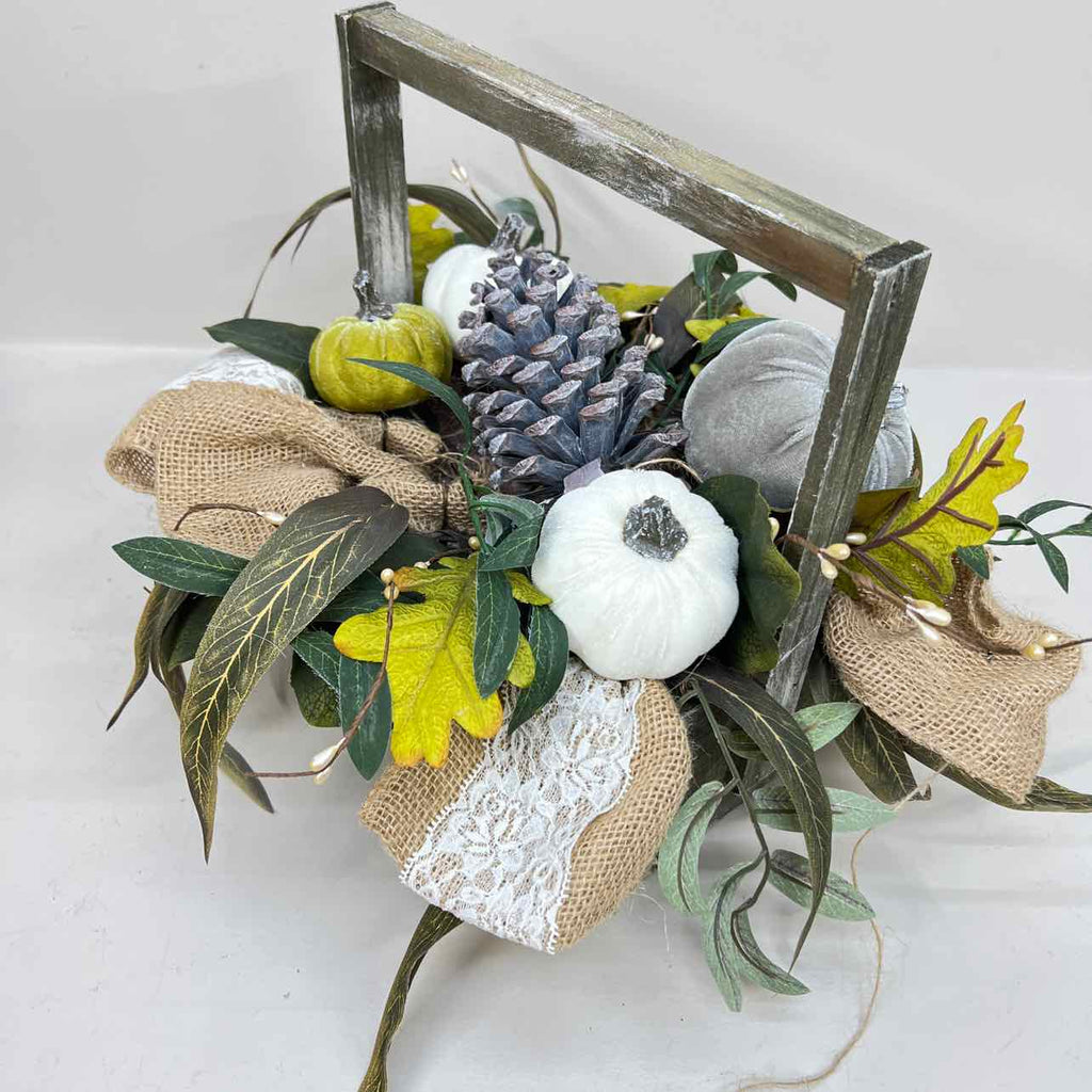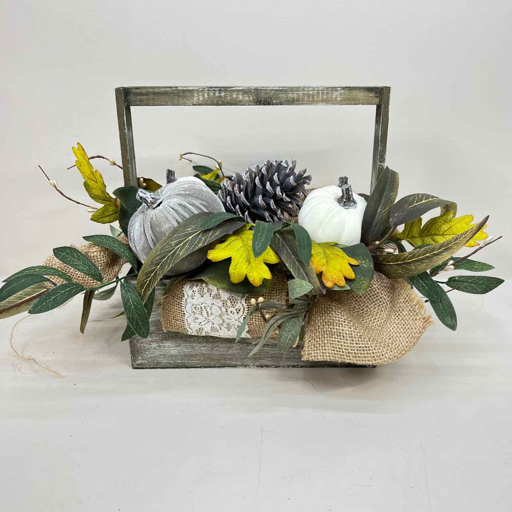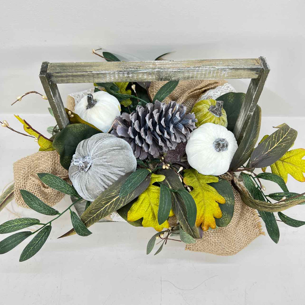 Fall Centerpiece in Wood Box - 11" Tall x 11" Wide
