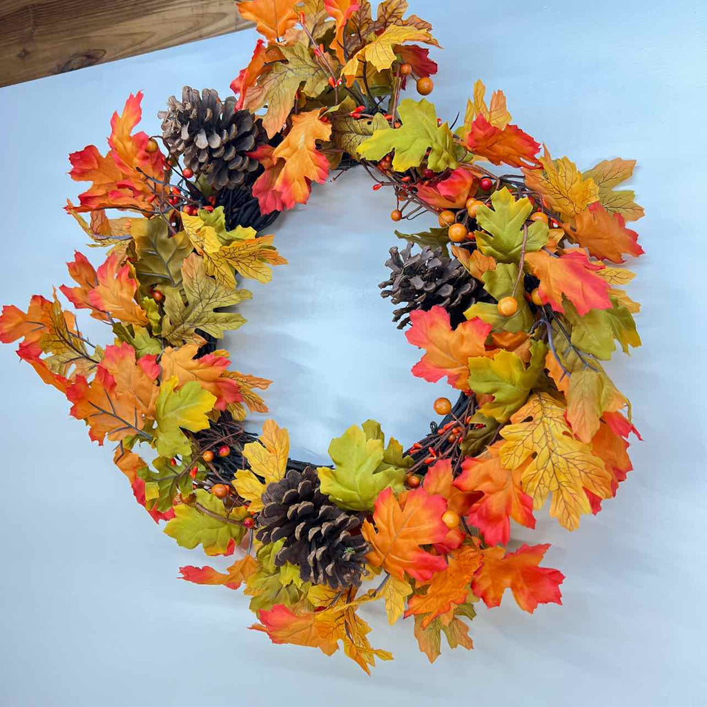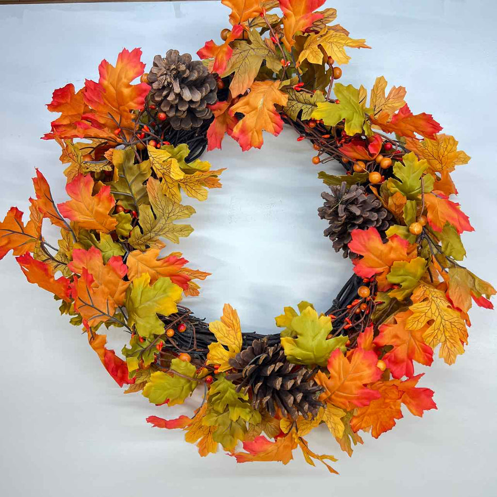 Fall Wreath - Leaves & Pinecones on Grapevine Wreath - 20" Wide