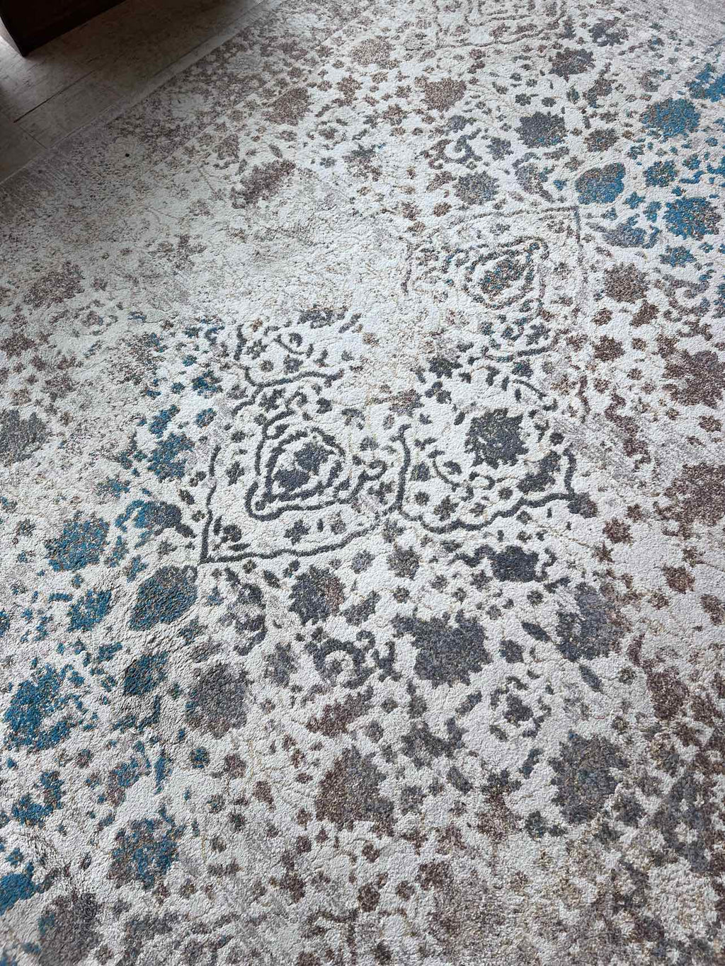 Large Area Rug - Cream w/ Brown & Blue Pattern - 125" x 93"
