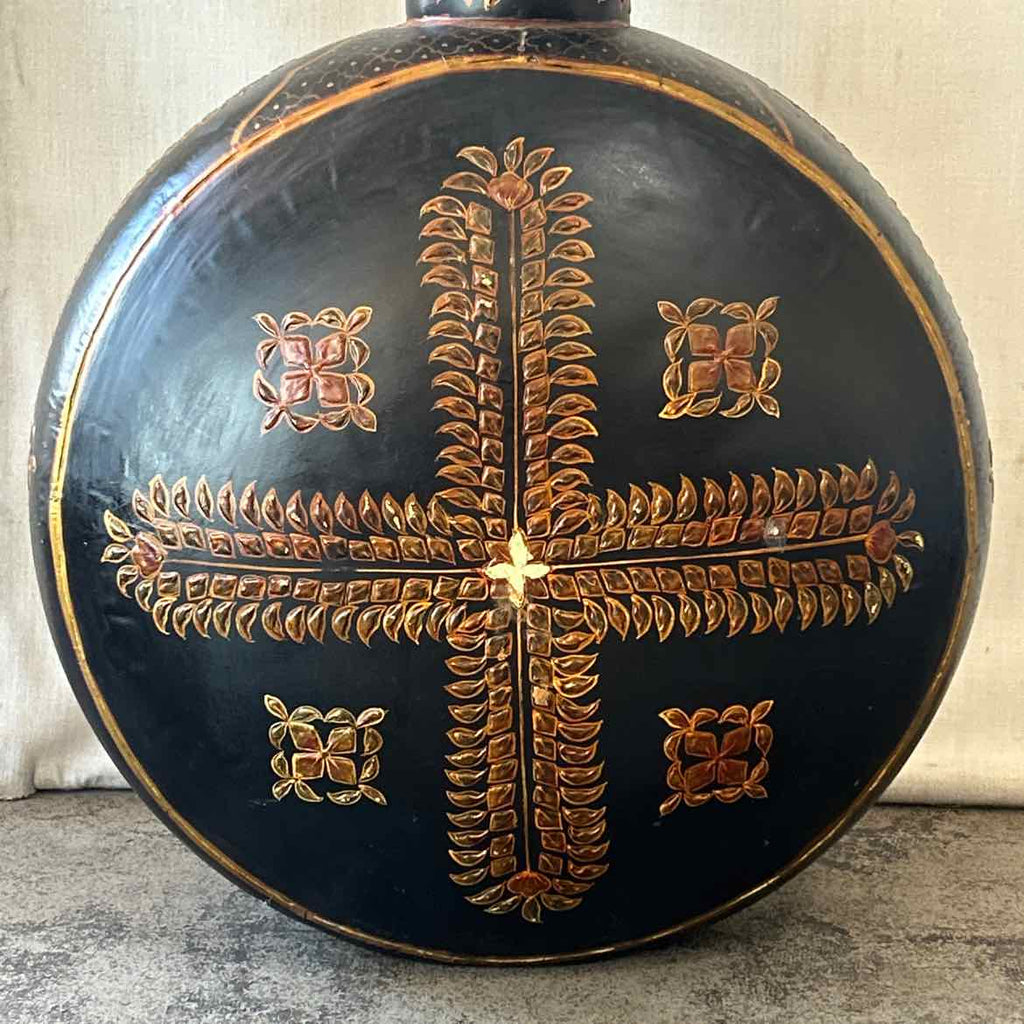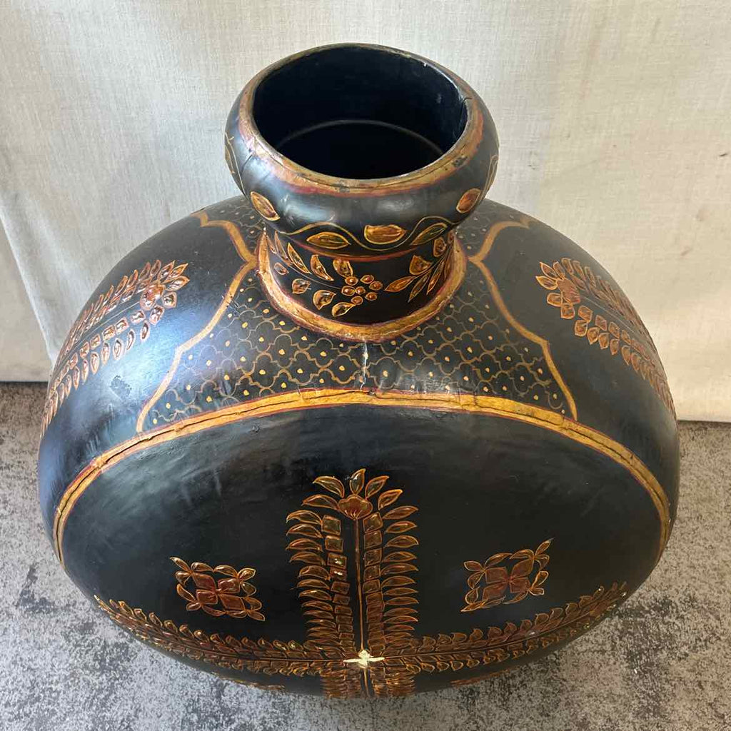 Large Metal Floor Vase w/ Lid - Red,Black & Gold Floral - 32" Tall x 24" Wide