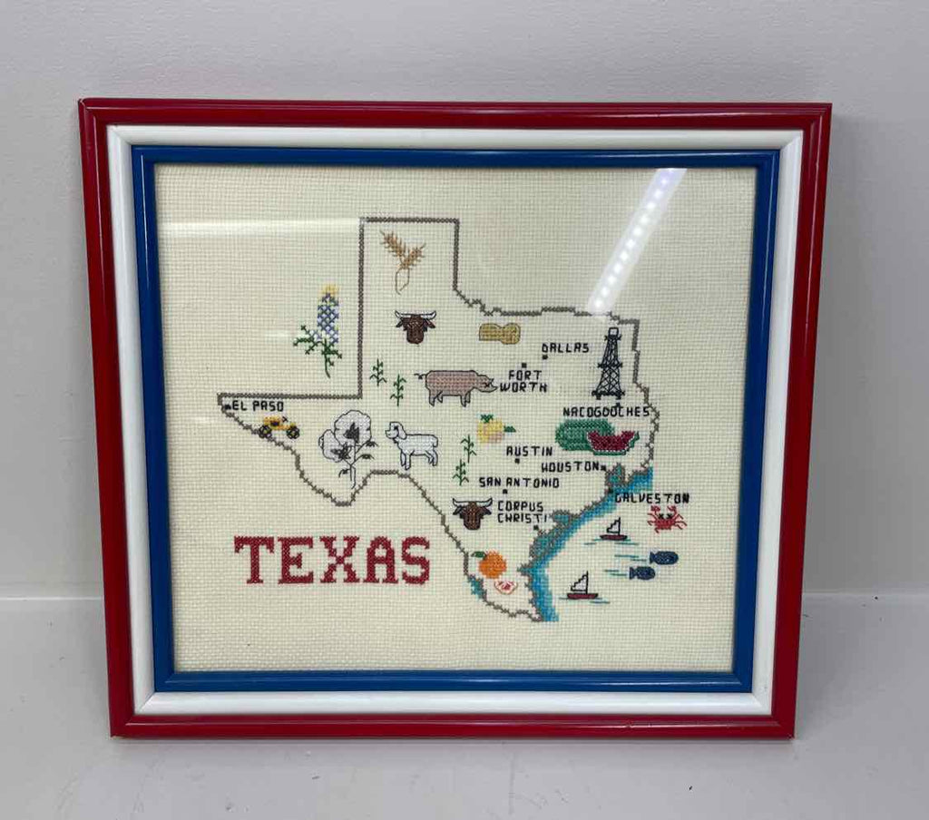 Red, White & Blue Framed Texas Cross Stitch - 11" x 12"