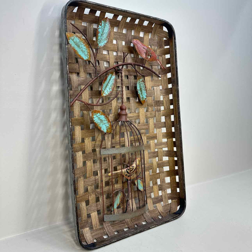 Basket Style Wall Decor w/ Metal Bird - 25" x 14"