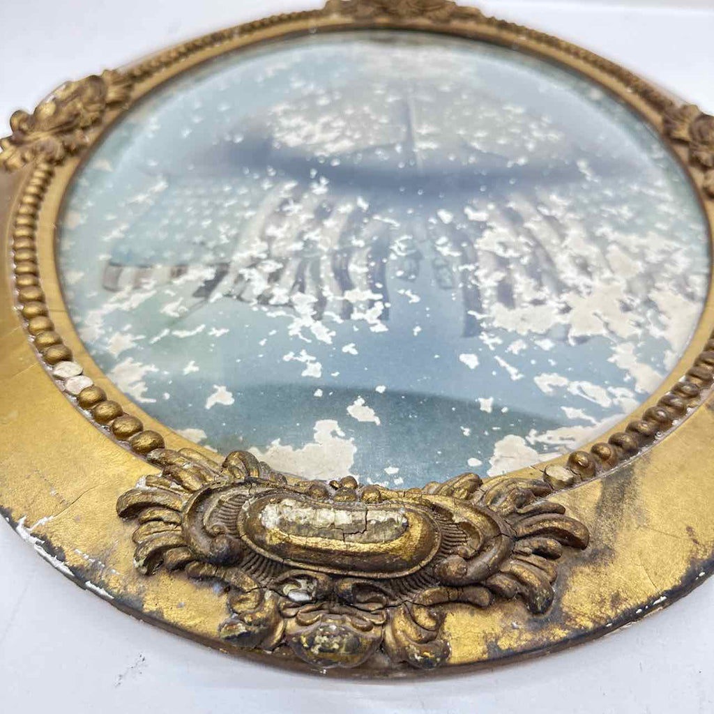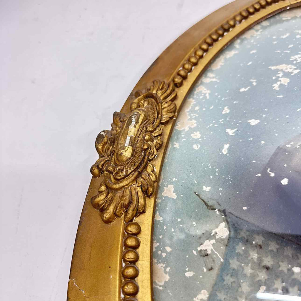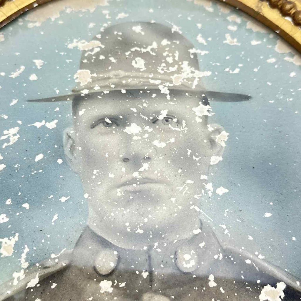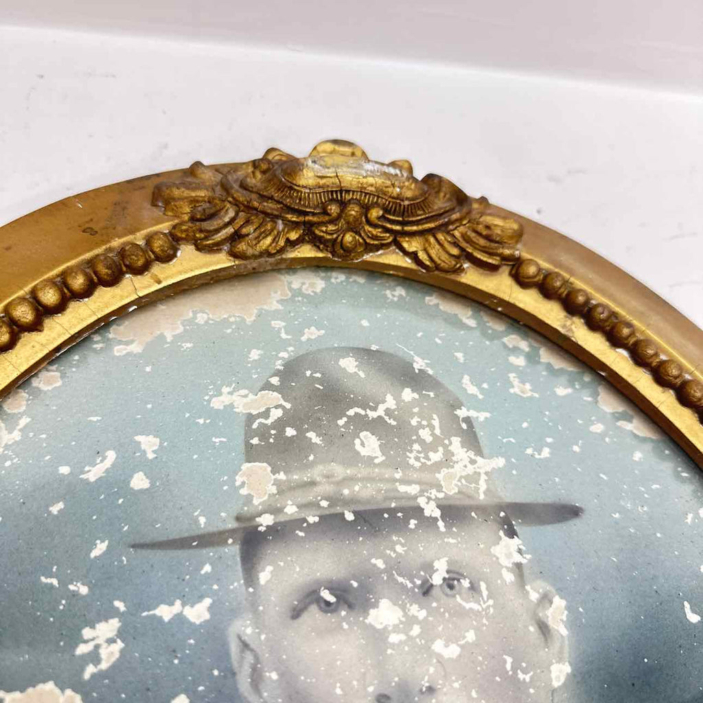Antique Gold Painted Wood Framed w/ Curved Glass & Soldier Photo - 24" Tall x 17" Wide