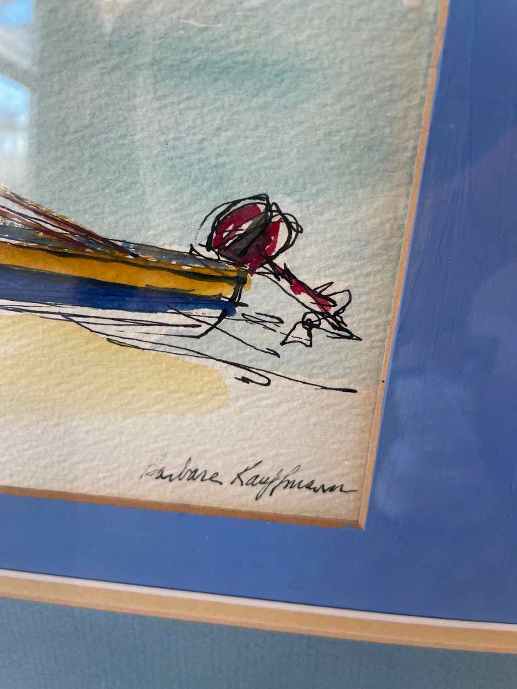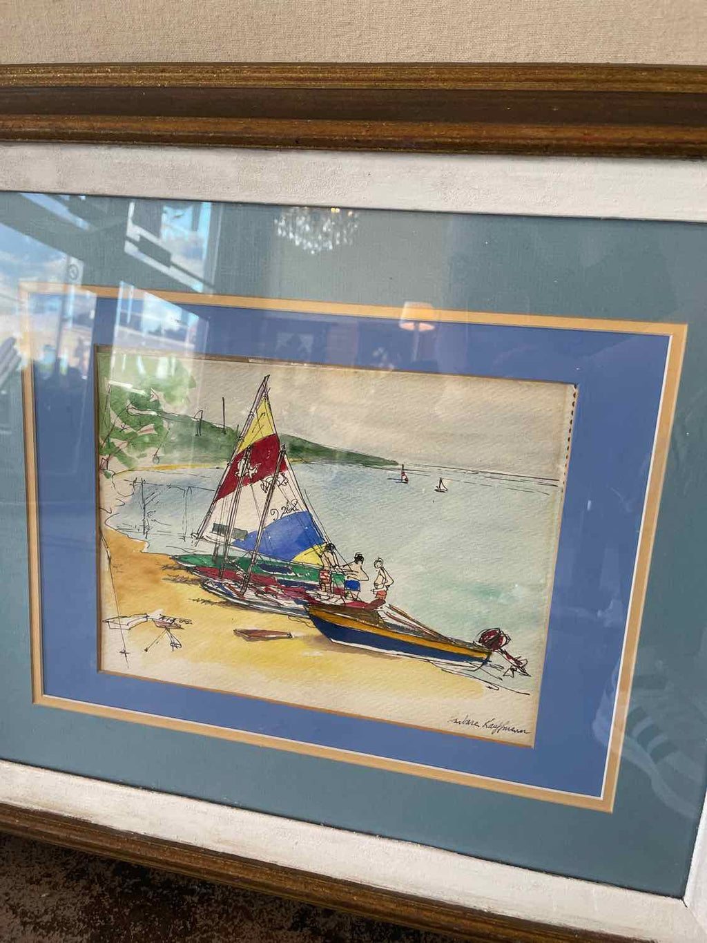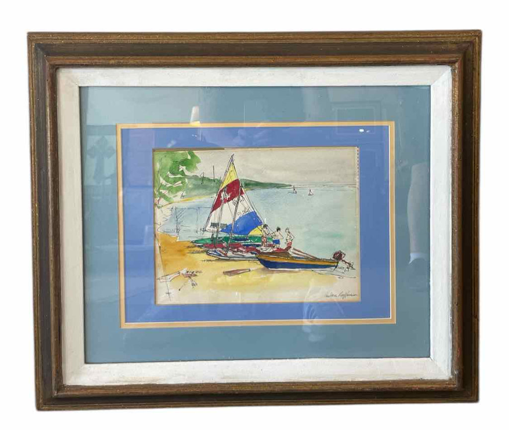Framed Original Watercolor of Sailboat - Signed By Artist - Watercolor has slipped in frame - 21.5" Tall x 25.5" Wide