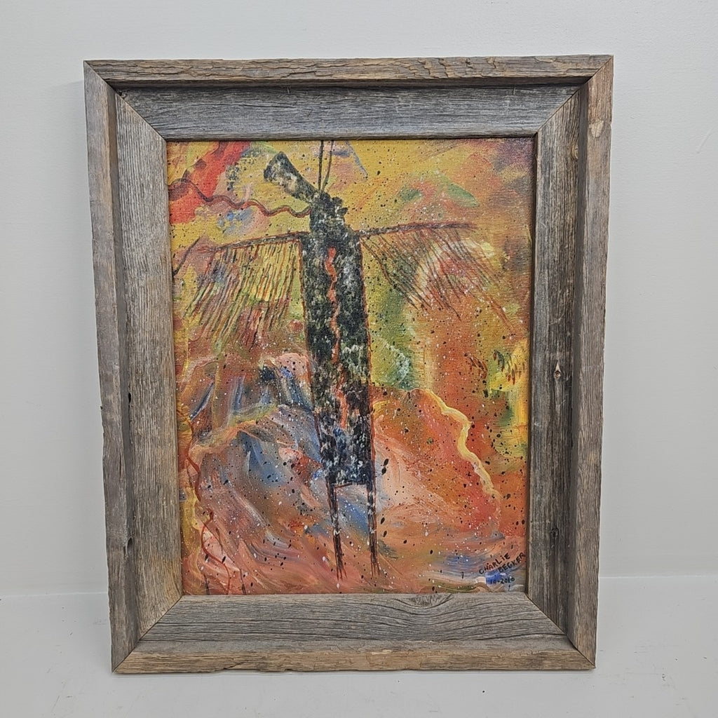 Framed Painting of Native American Cave Pictographs by Local Lufkin Artist Charlie Becker - 17" Tall x 14" Wide