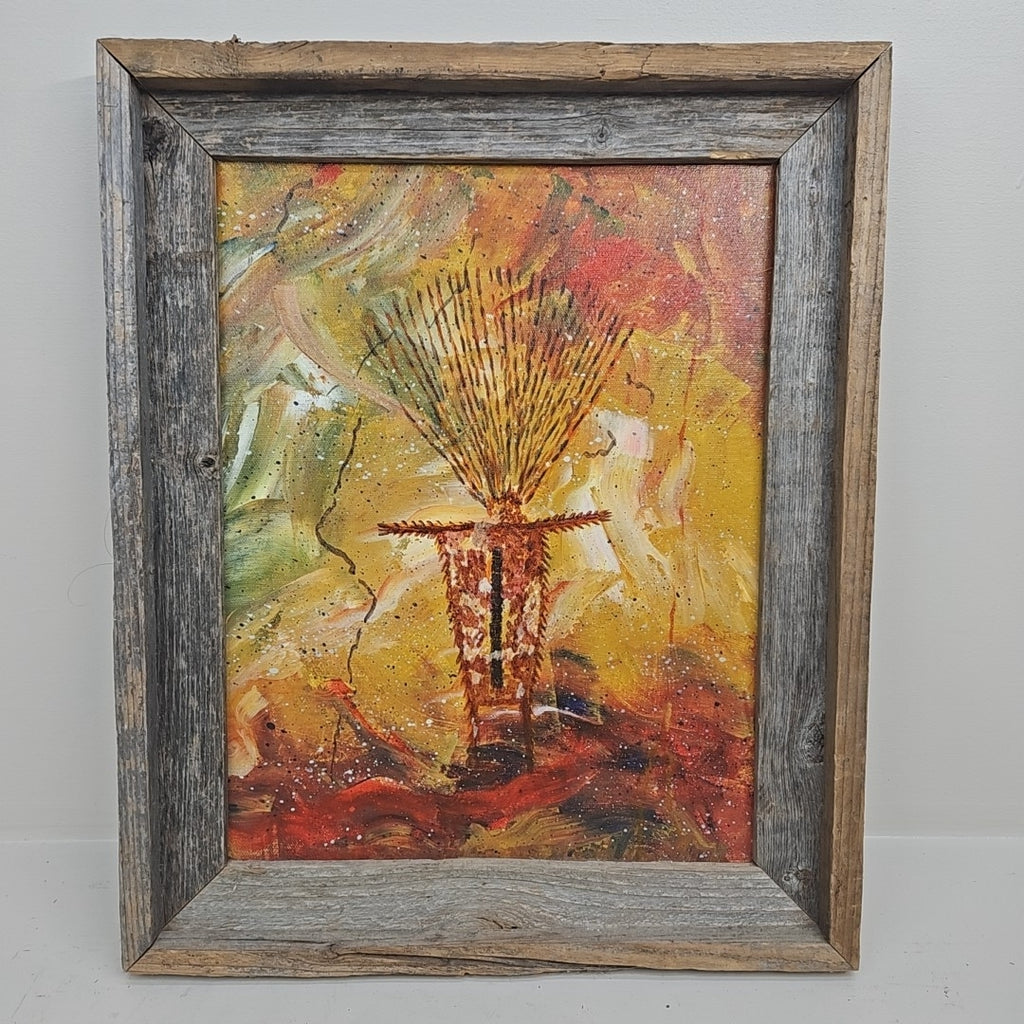 Framed Painting of Native American Cave Pictographs by Local Lufkin Artist Charlie Becker - 17" Tall x 14" Wide