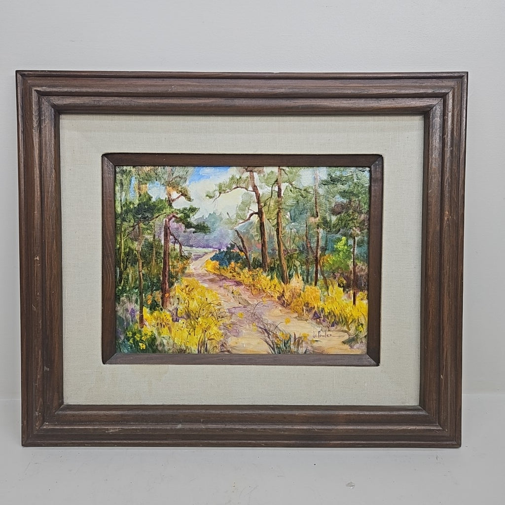 Framed Original Painting of Forest Path - Signed by Artist Jo Fowler - 16" Tall x 19" Wide