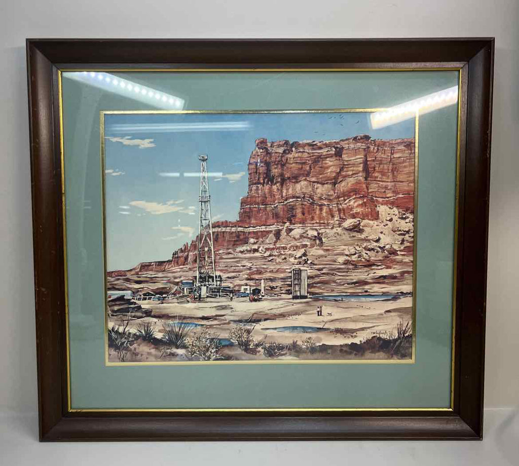 Vintage Framed Print of Oil Drill titled "Red Mesa" by E. M. "Buck" Schiwetz - 19.5" Tall x 22" Wide
