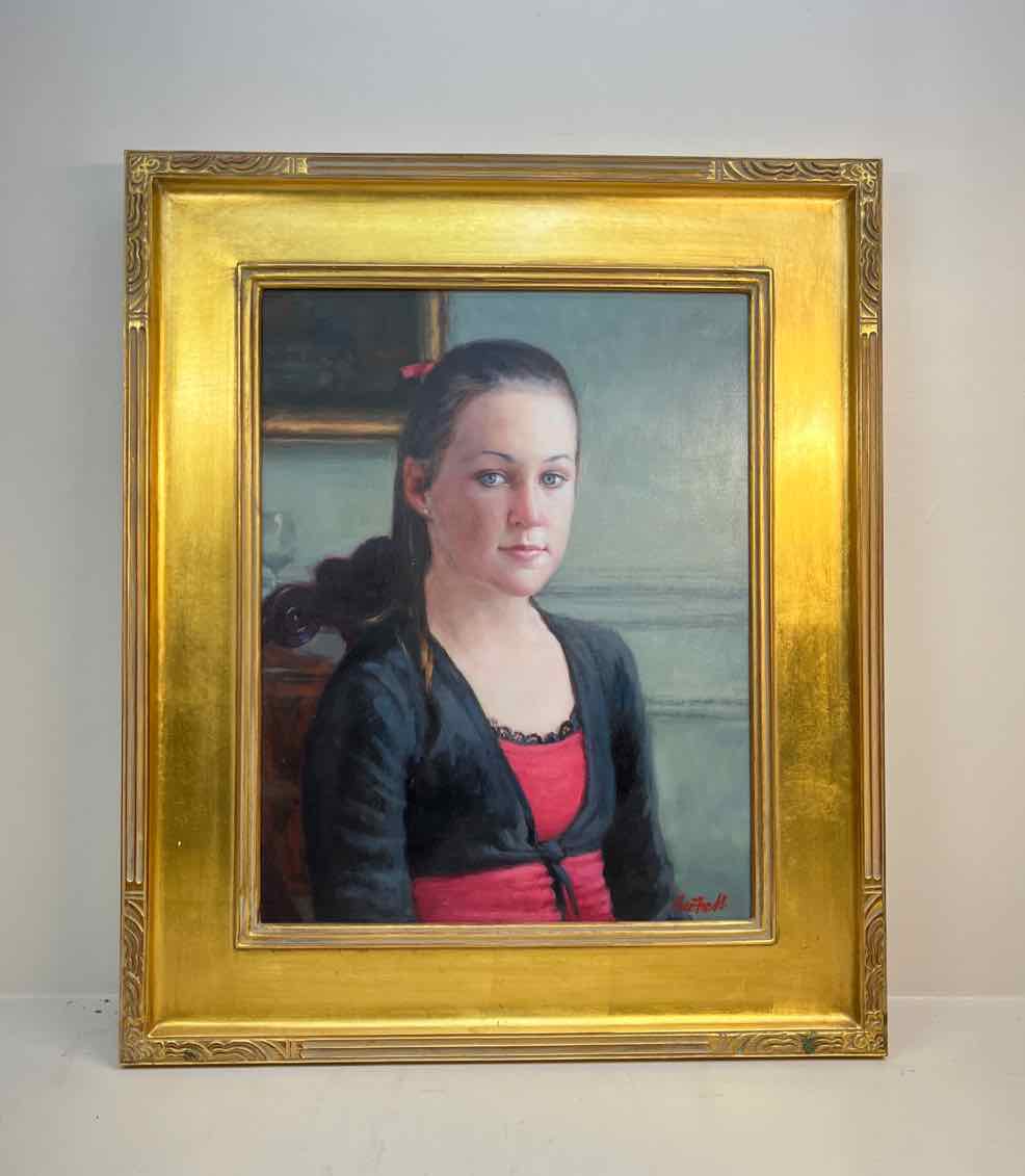 Gold Framed Painting of Young Lady - 25" Tall x 21" Wide