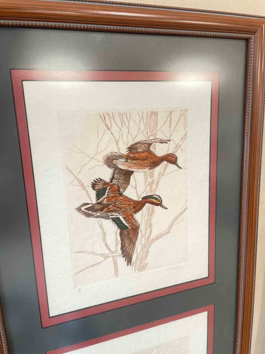 Wood Framed Signed Prints by Victor Hohne - Mallards in Flight - 28" Tall x 14" Wide