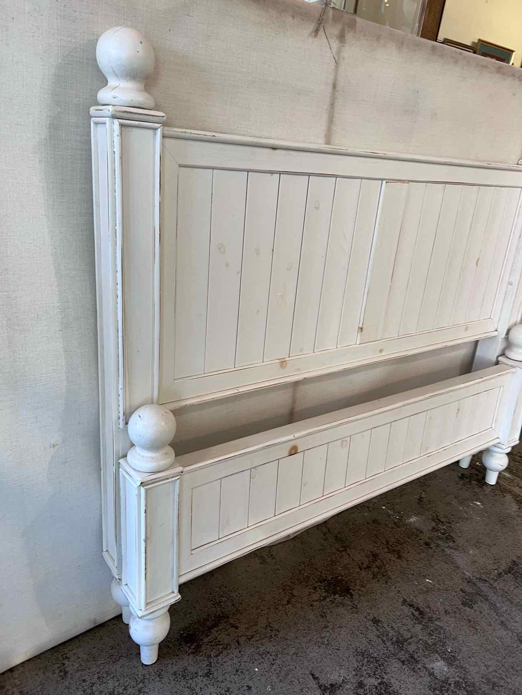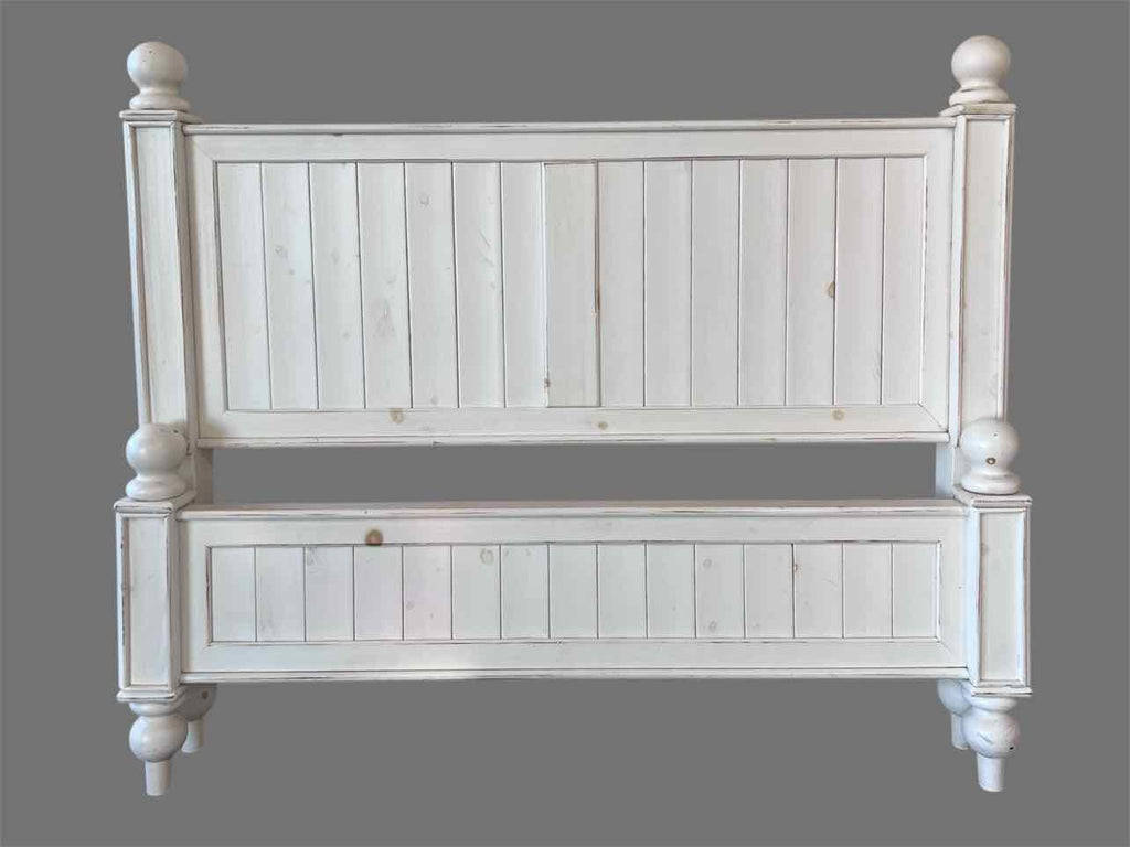 Solid Wood Full Size Off White Bed - Headboard, Footboard, Rails & Slats - 51.5" Tall x 61" Wide