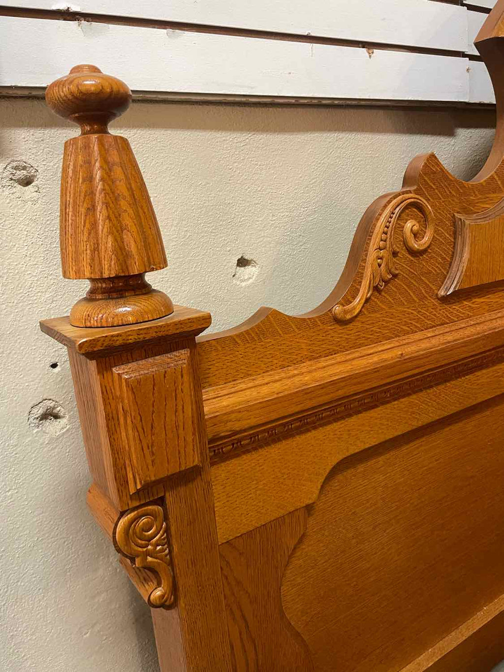 King Sized Lexington Furniture " Victorian Mansion " Quarter Sewn Oak Bed - Headboard, Footboard, Rails -Has Middle Rail- 73.5" Tall x 83" Wide
