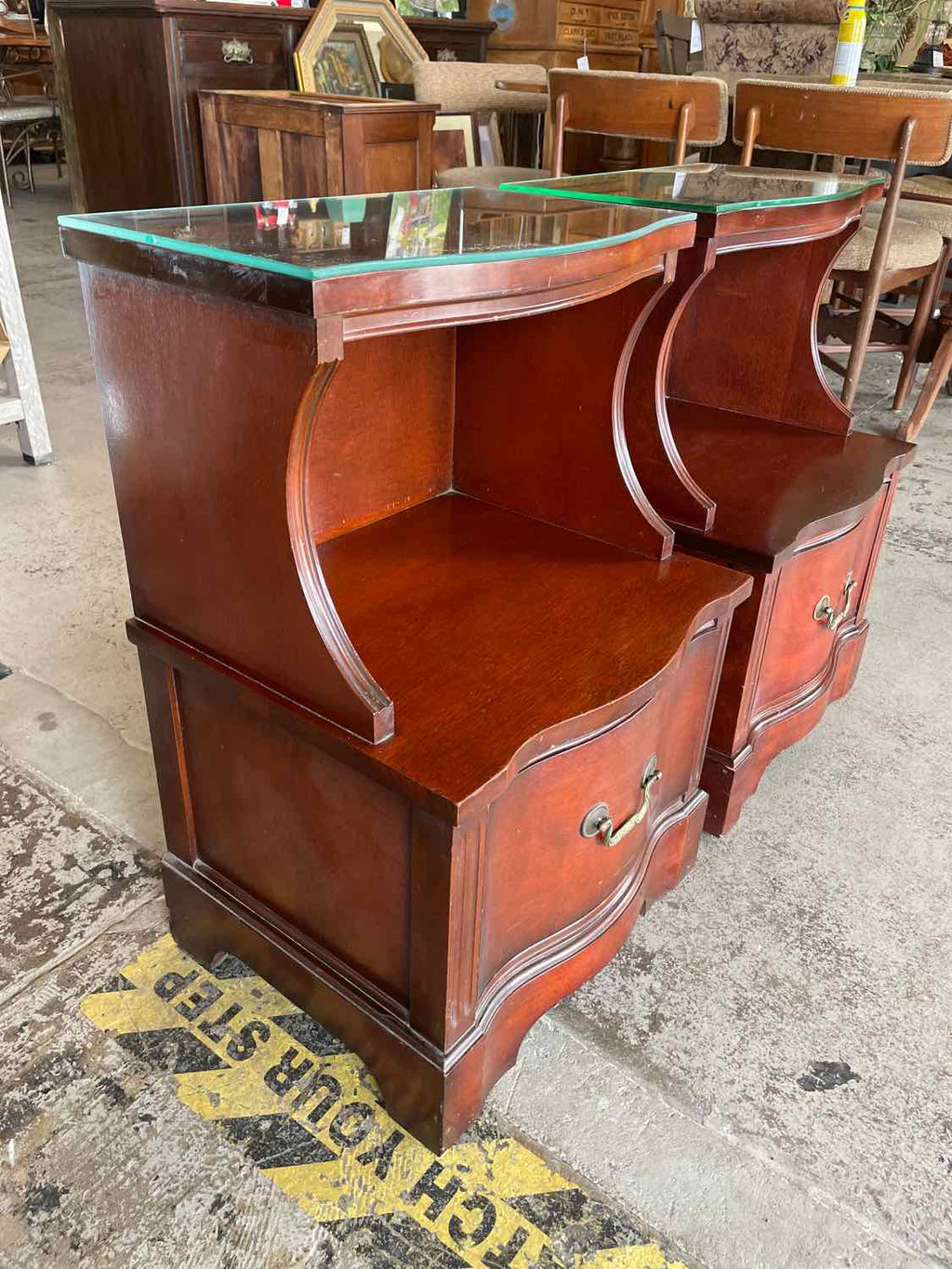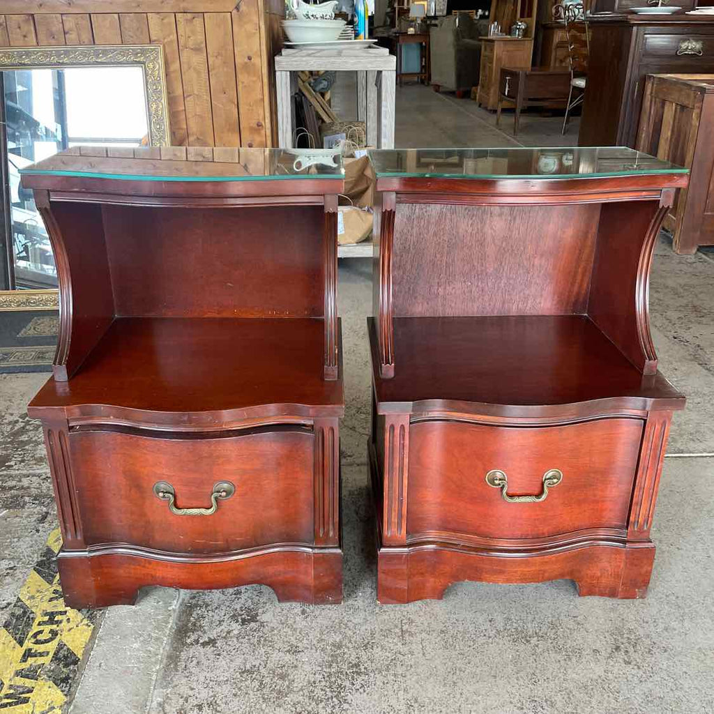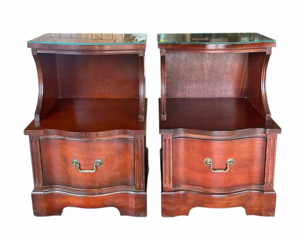 Set of 2 Mahogany Nightstands w/ 1 Drawer & Bottom Shelf by Table Rock - 27" Tall x 18" Wide x 15.5" Deep