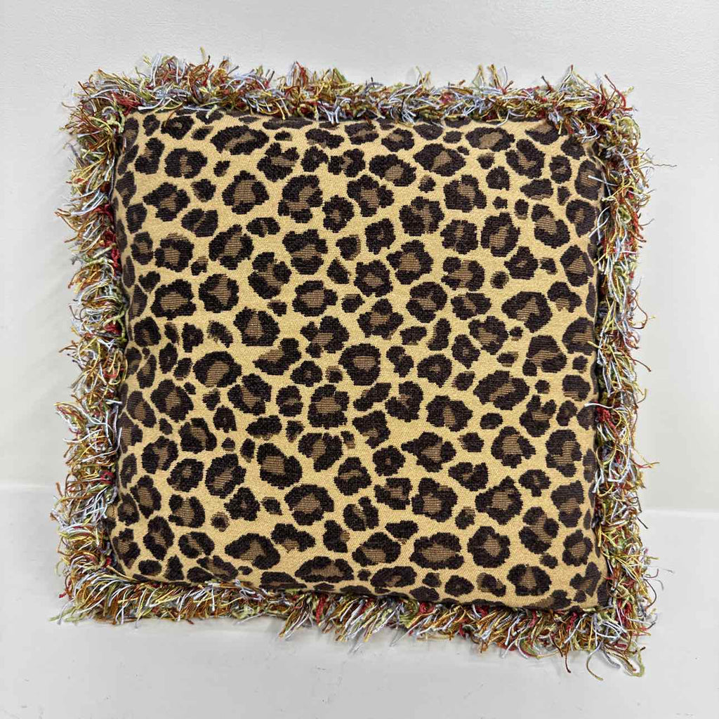 Leopard & Floral Pillow w/ Fringe - 15" x 15"