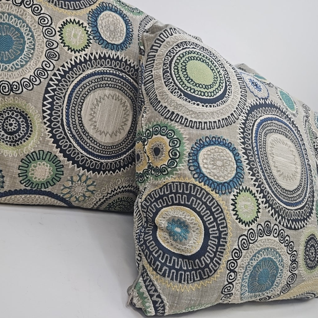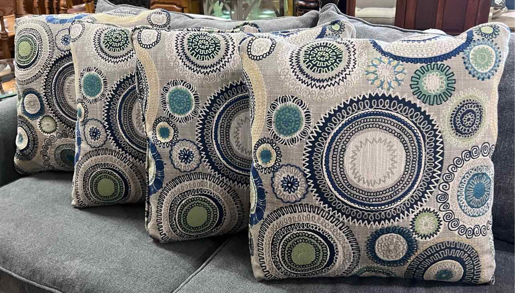 Set of 4 Blue & Beige Throw Pillows - 21" x 21"
