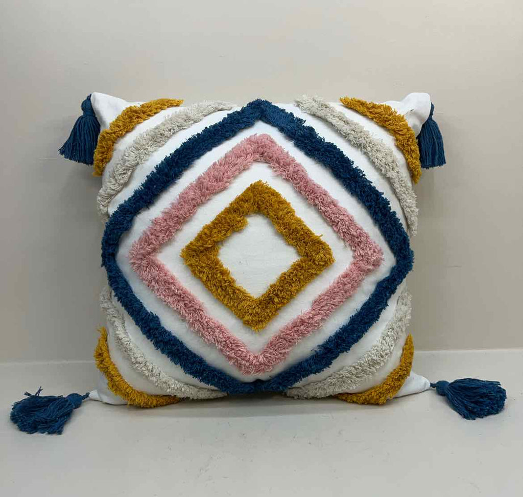 Pink/Blue/Yellow Pillow w/ Tassels - 16" x 17"