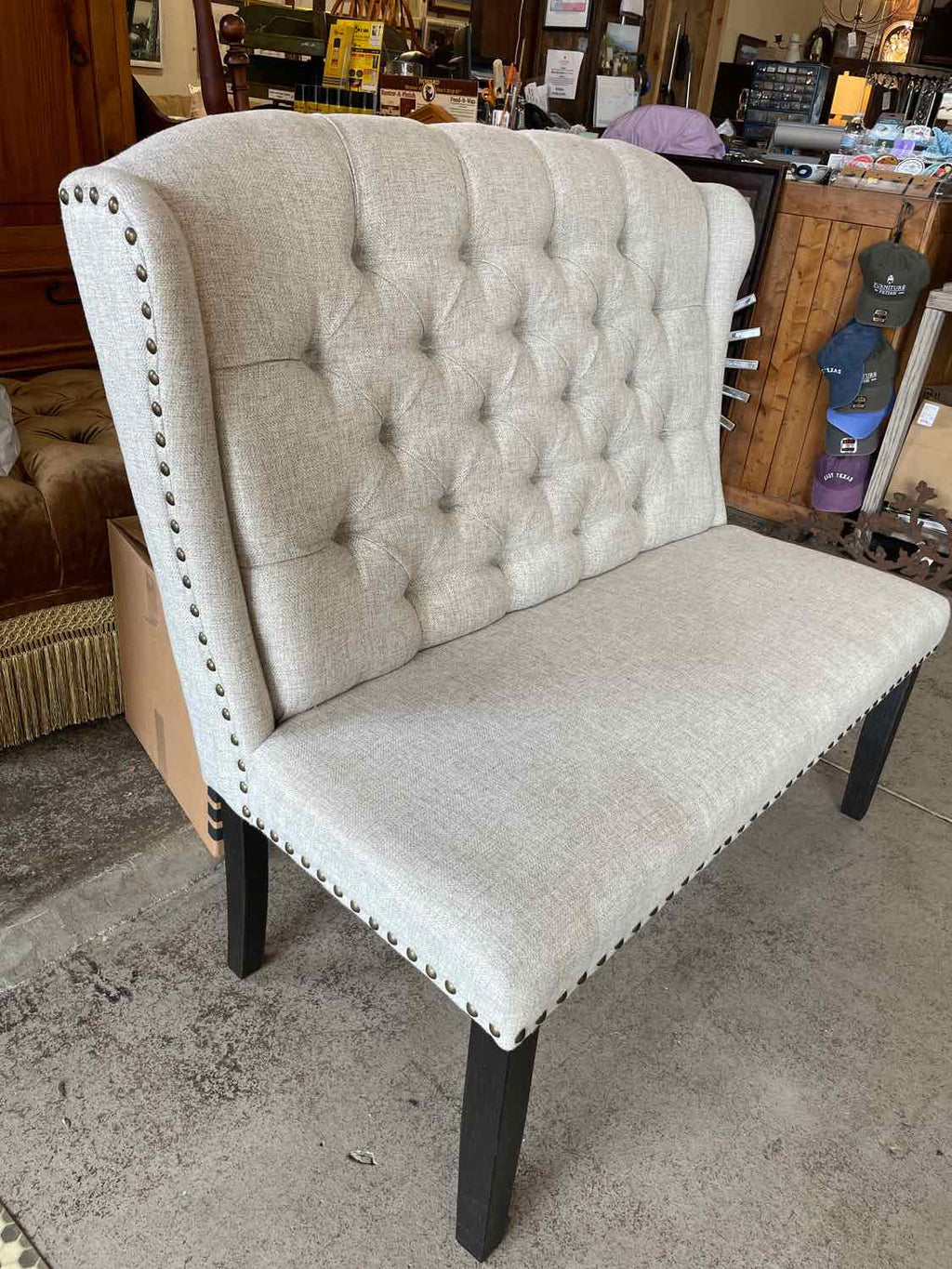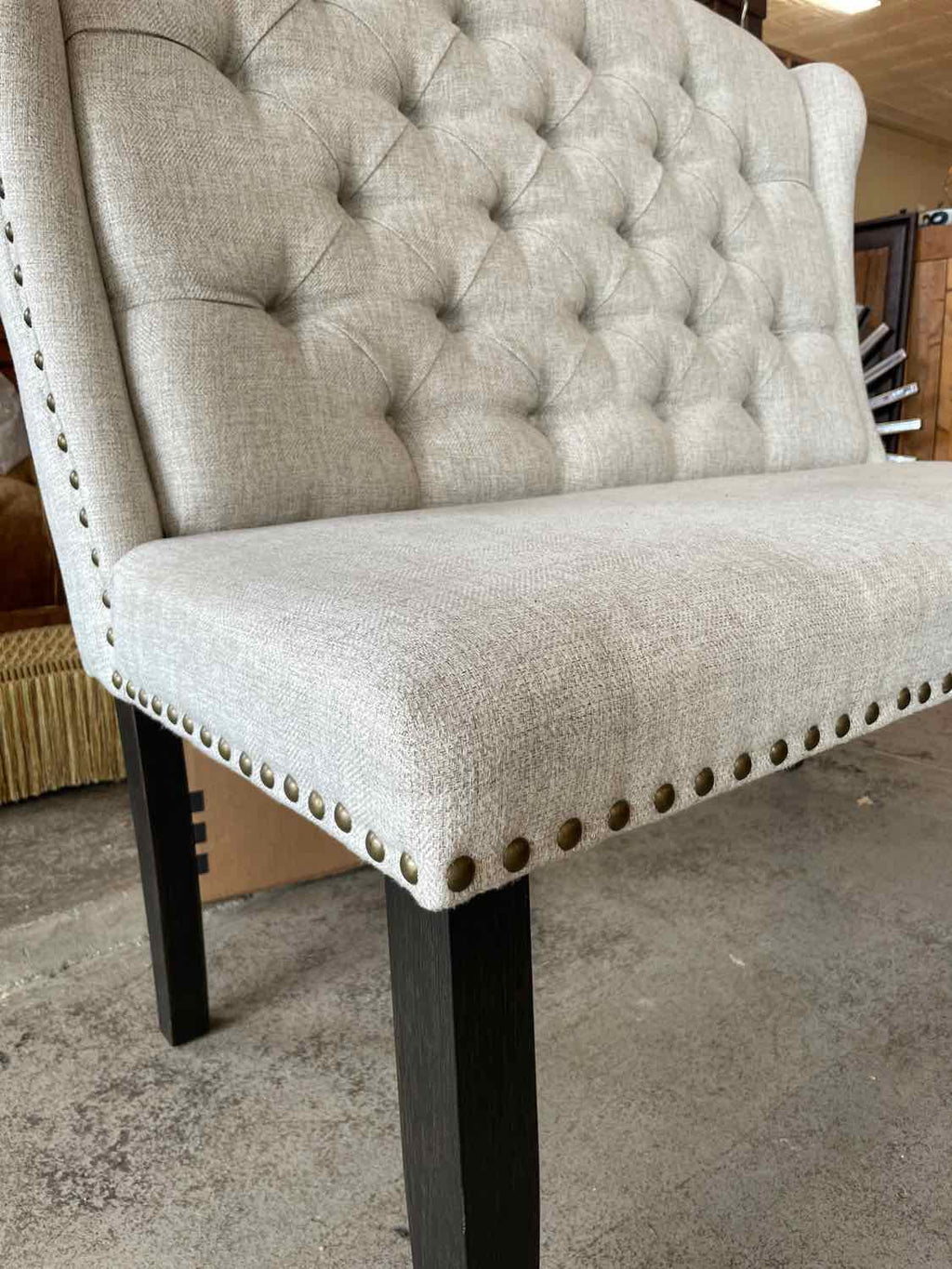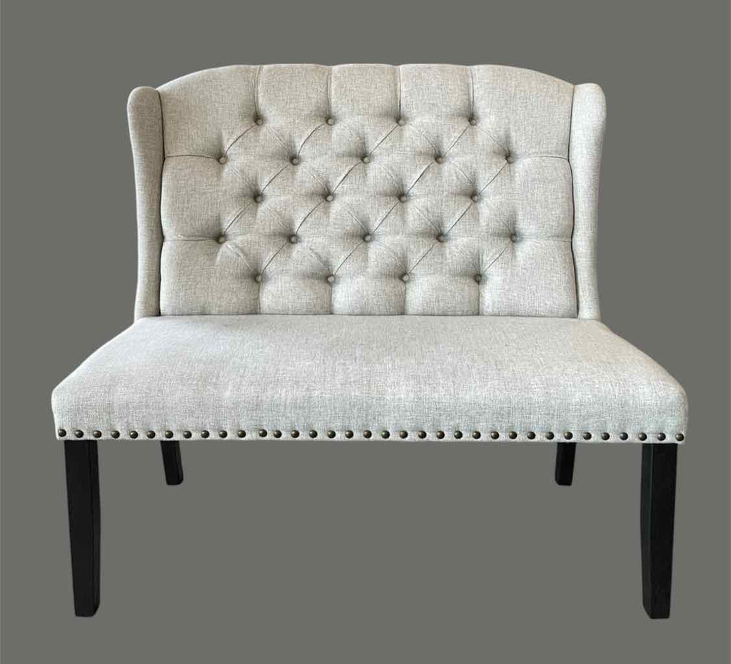 Gray Tufted Wingback Bench w/ Nailhead Trim - 44" Tall x 47" Wide x 22" Deep