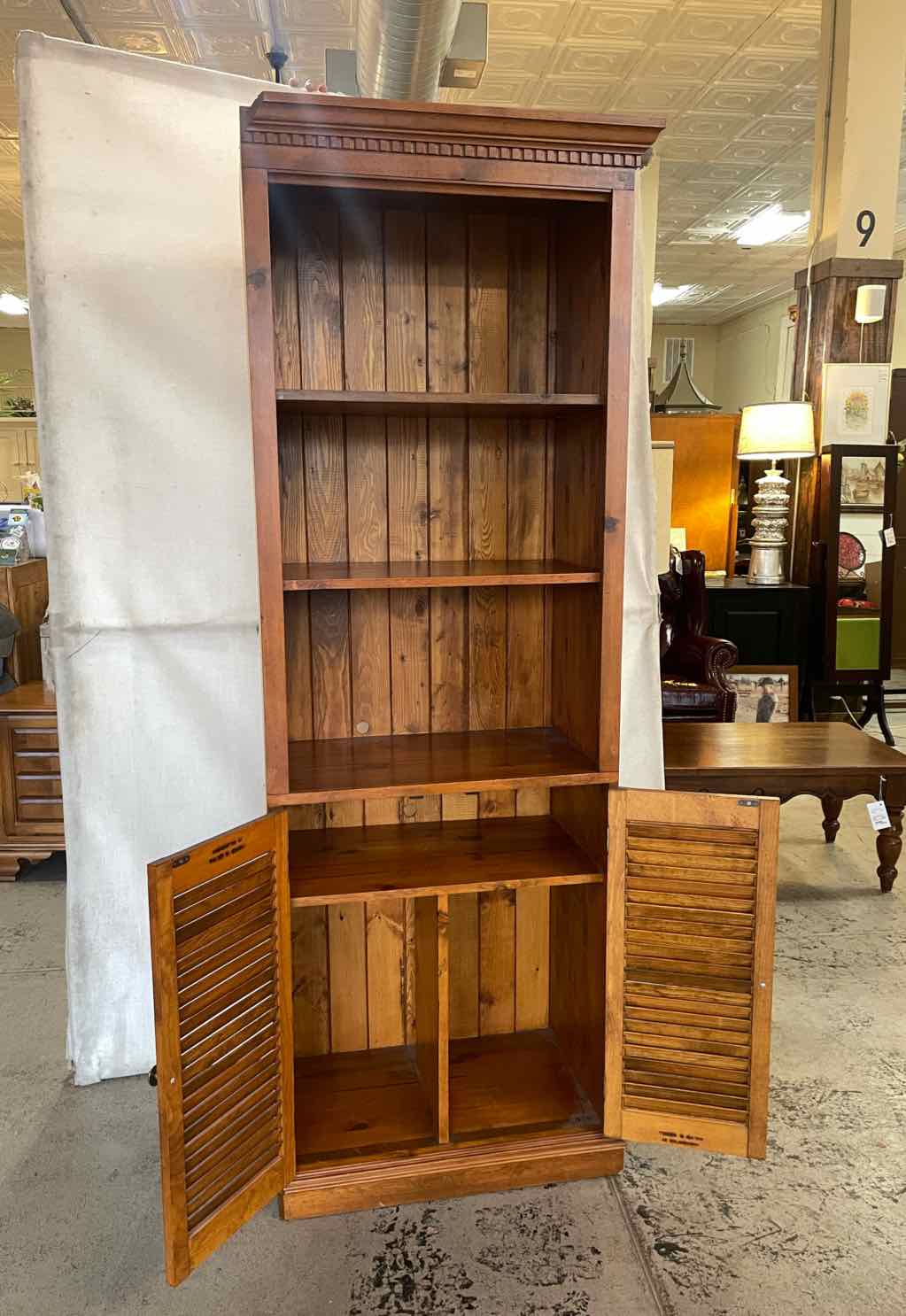 Custom Made Lighted Bookshelf w/ 2 Shutter Style Doors & 2 Adjustable Shelves - 75" Tall x 25.5" Wide x 15" Deep