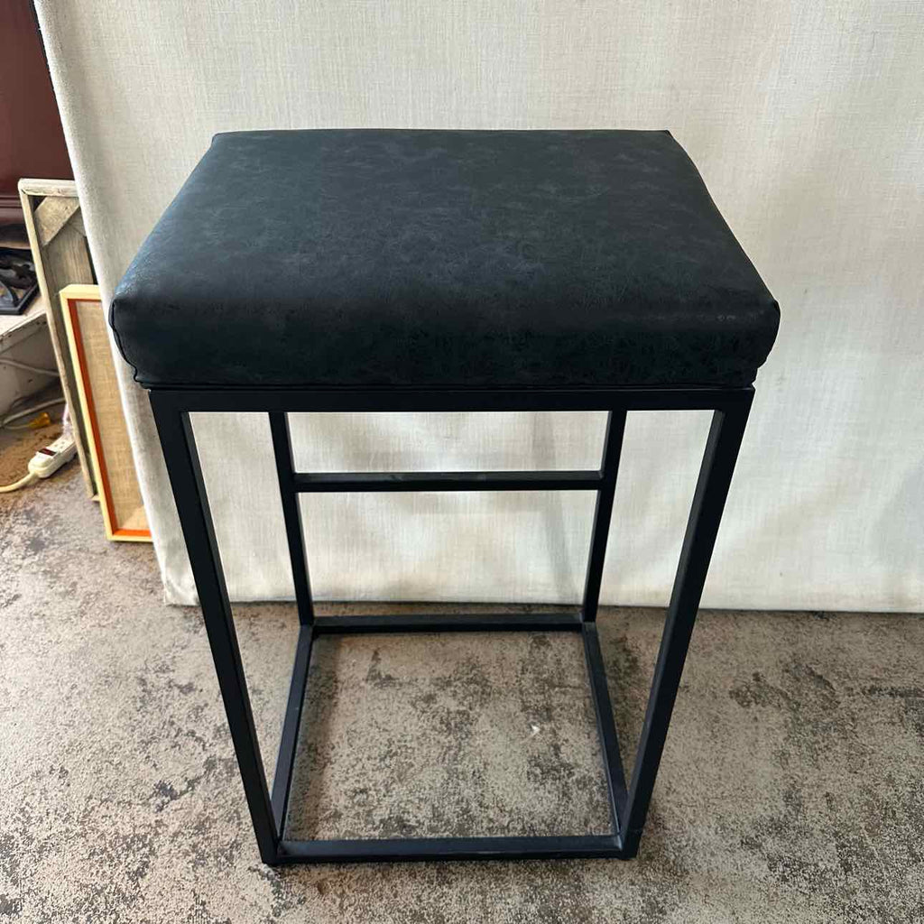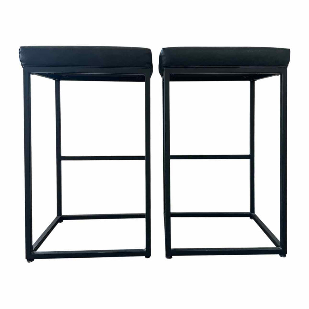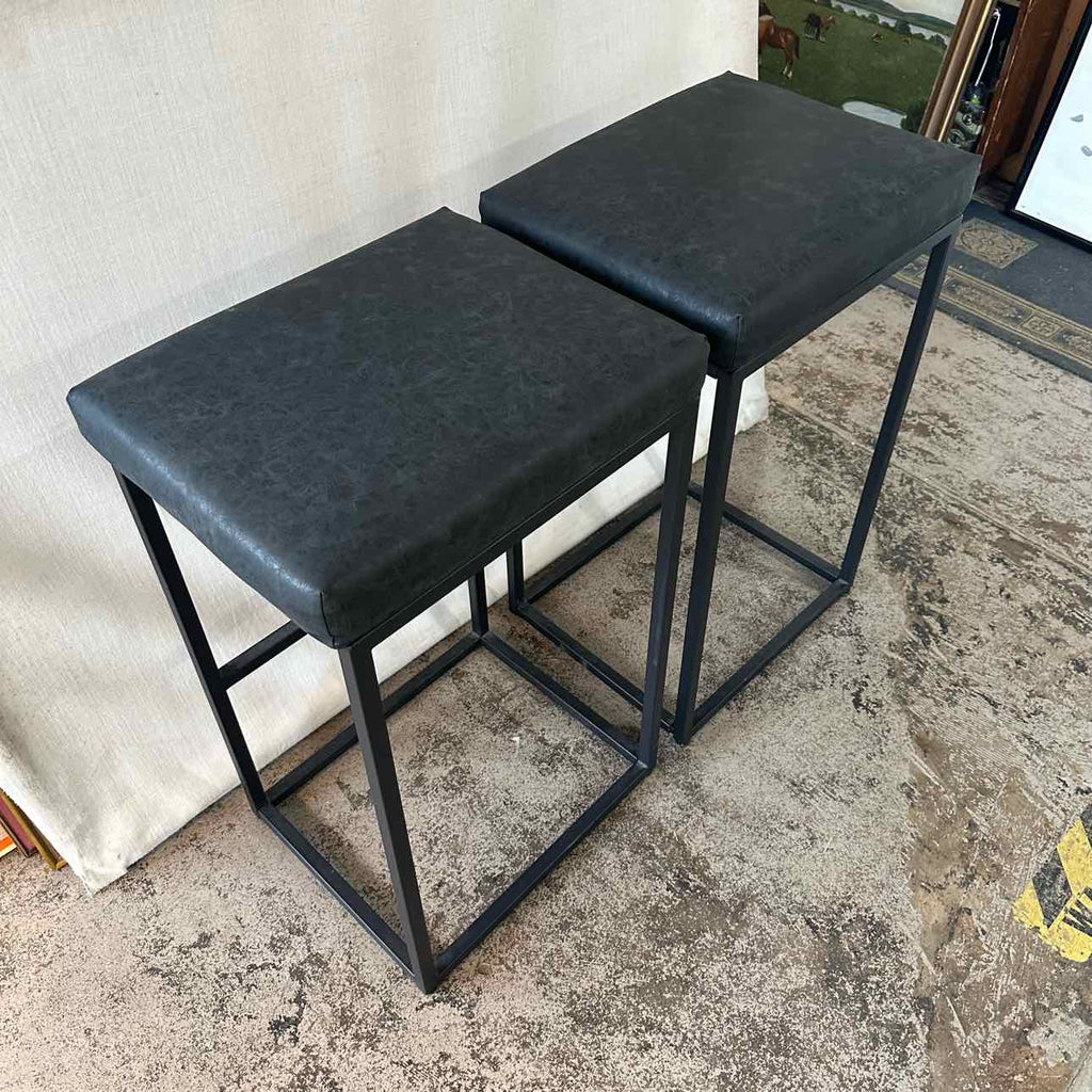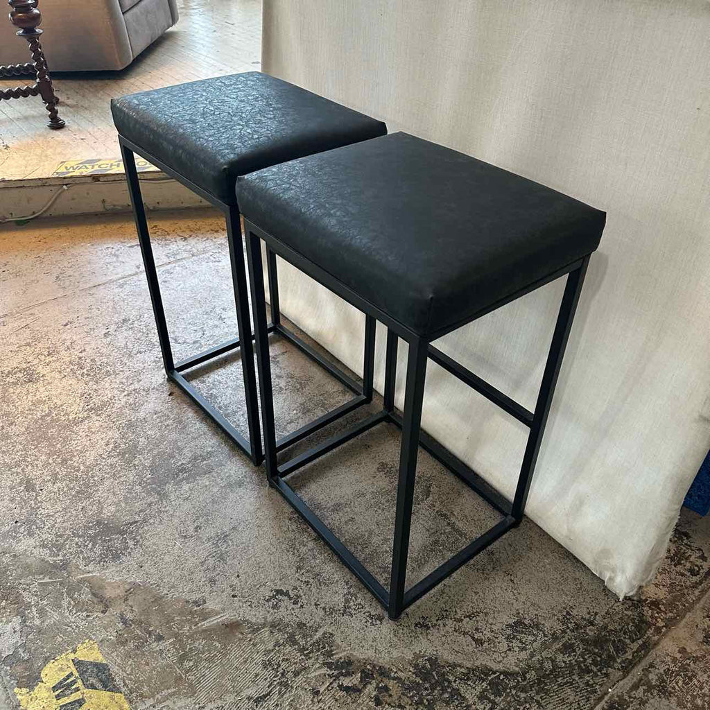 Set of 2 Metal Bar Stools w/ Black Faux Leather Seats - 30" Tall x 19" Wide x 15" Deep