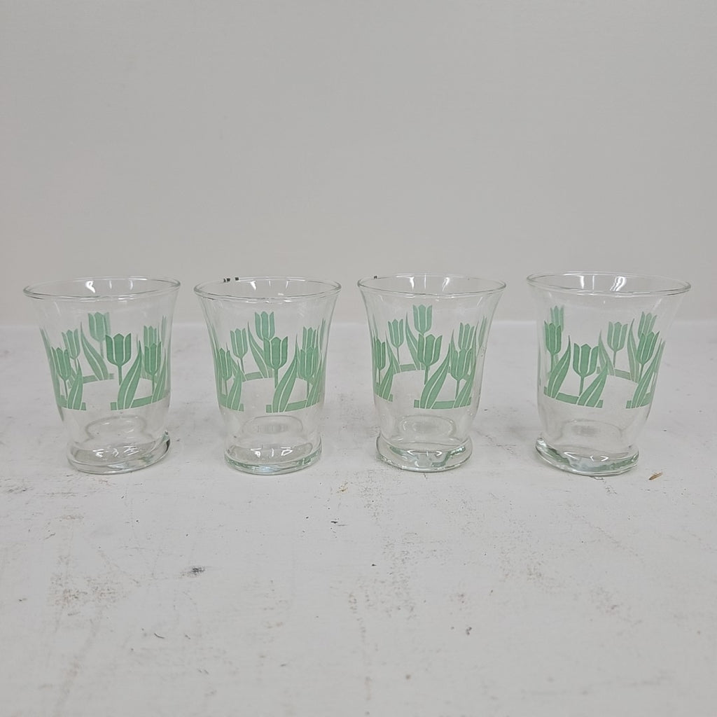 Set of 4 Vintage Libby Mint Green Tulip Juice Glasses - 3" Tall