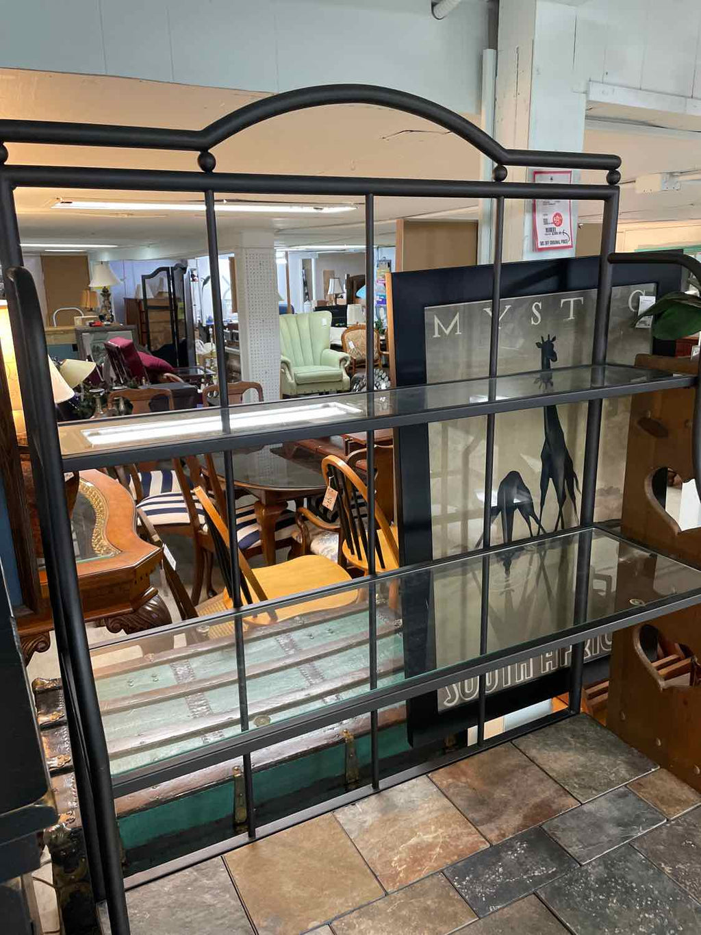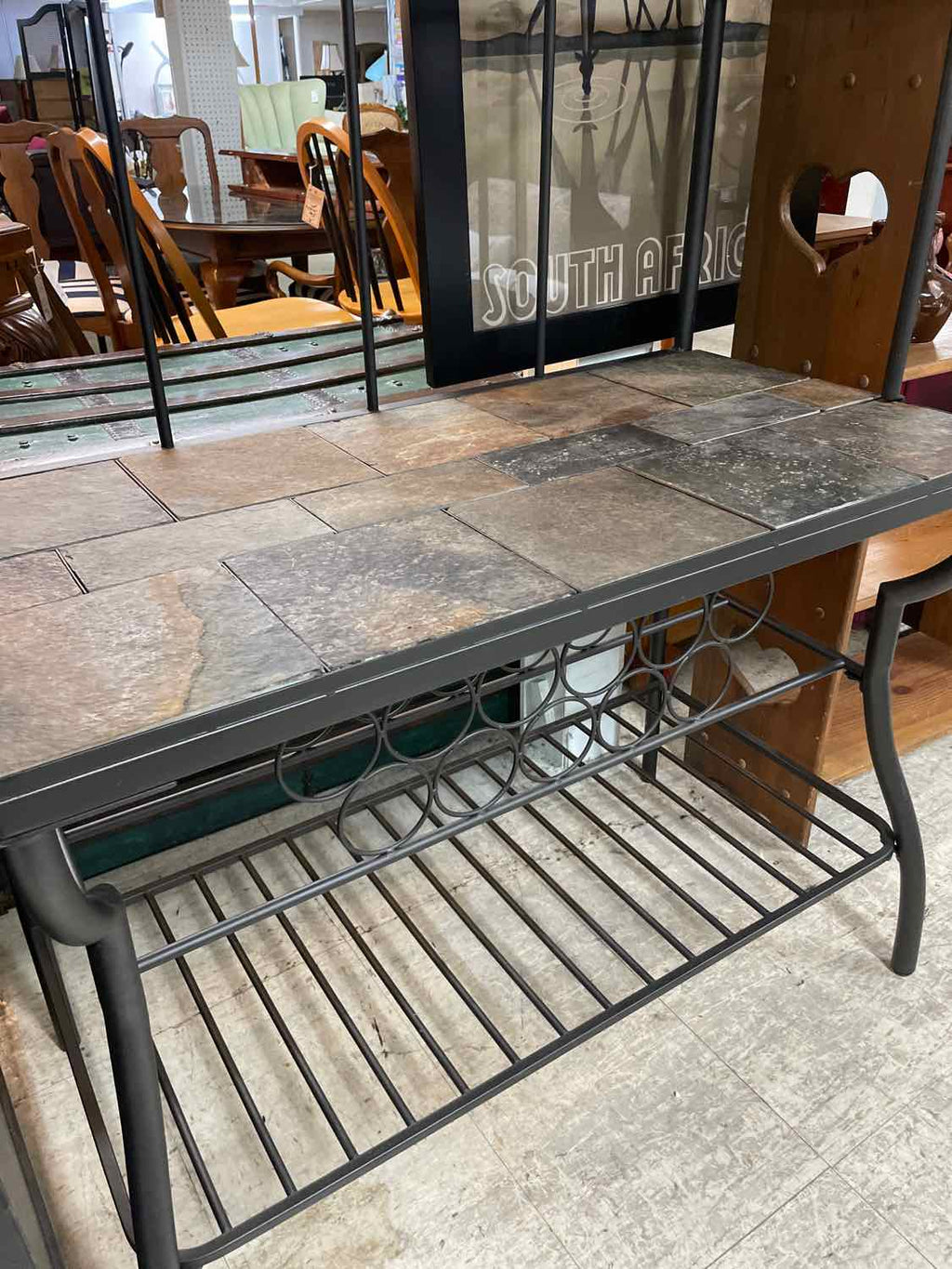 Black Metal, Slate & Glass Baker's Rack - 2 Glass Shelves, 21 Bottle Storage - 78" Tall x 40" Wide x 21.5" Deep