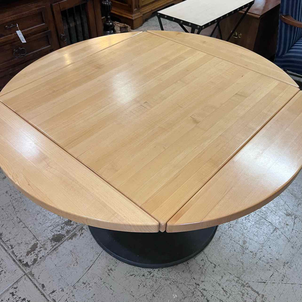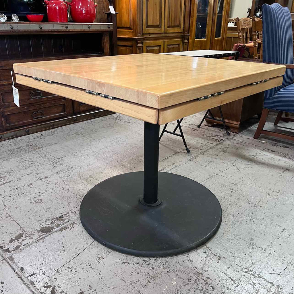 Boos Butcher Block Drop Leaf Breakfast Table w/ Cast Iron Base - 30" Tall x 34" Wide Square / 48" Wide Round