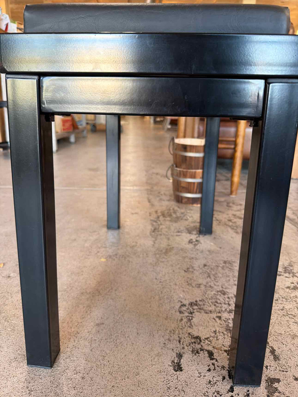 Black Metal Stool w/ Black Upholstered Seat - 19" Tall x 21.5" Wide x 13" Deep