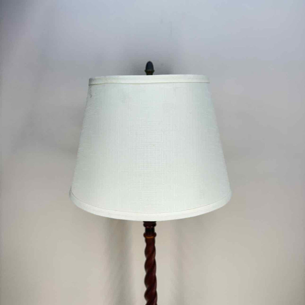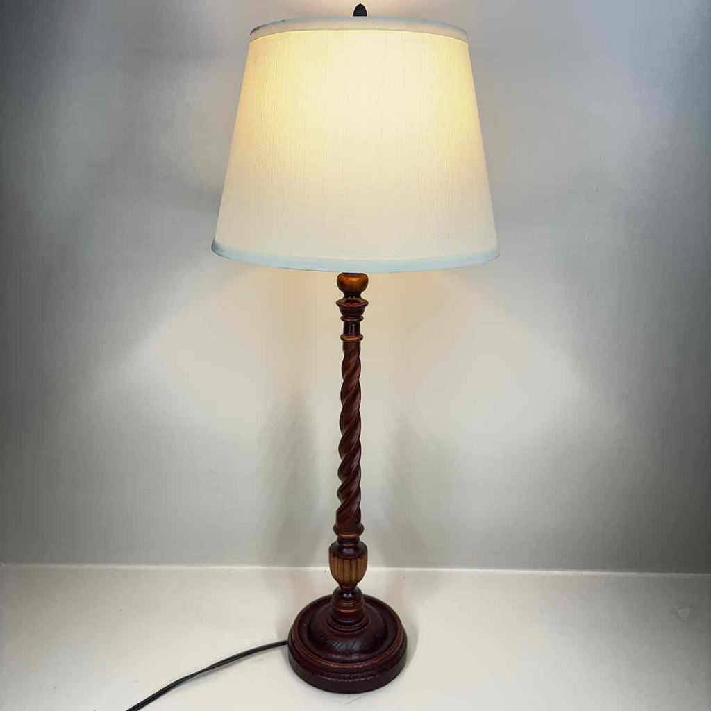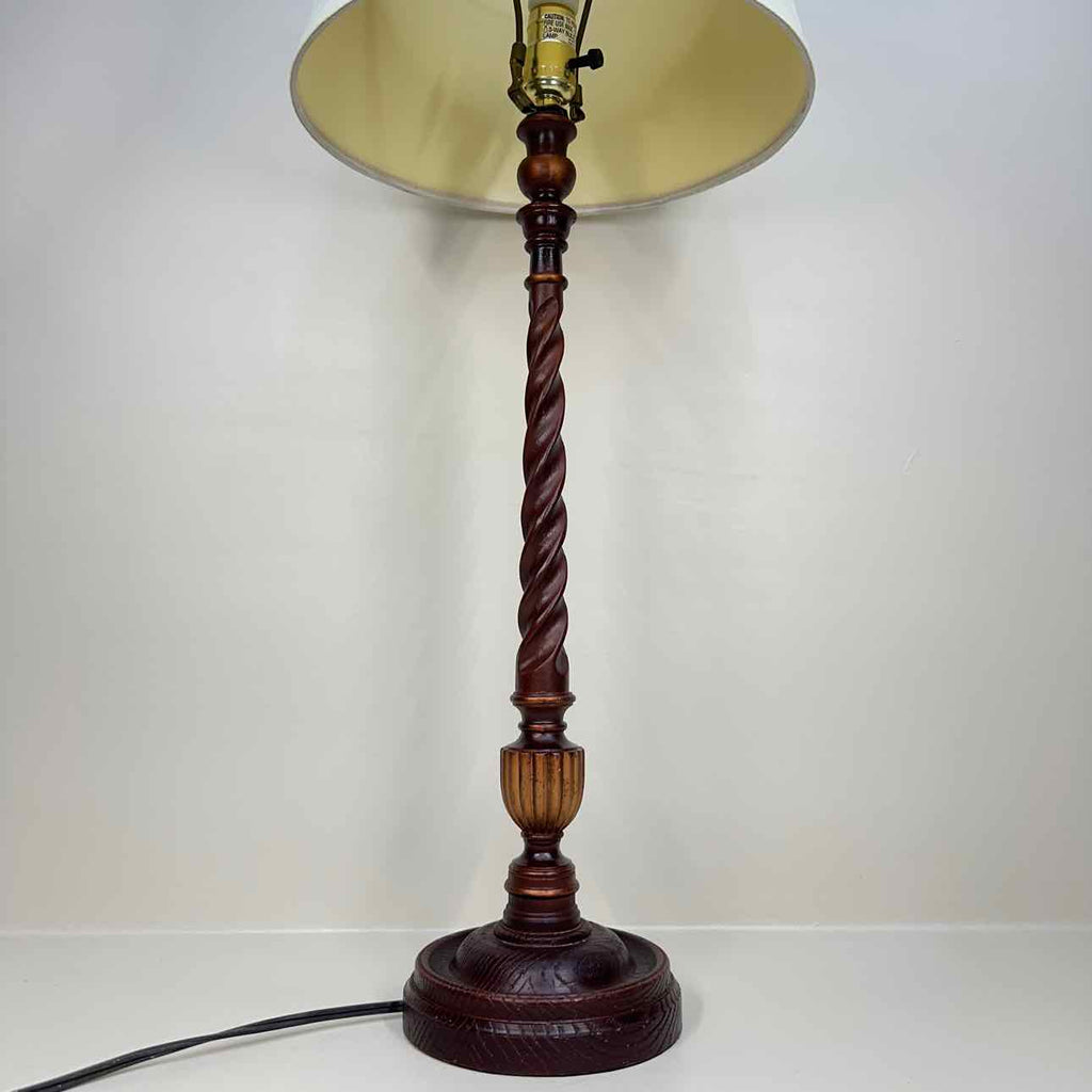 Red Wood Table Lamp w/ Twist Base & Beige Shade - 32" Tall
