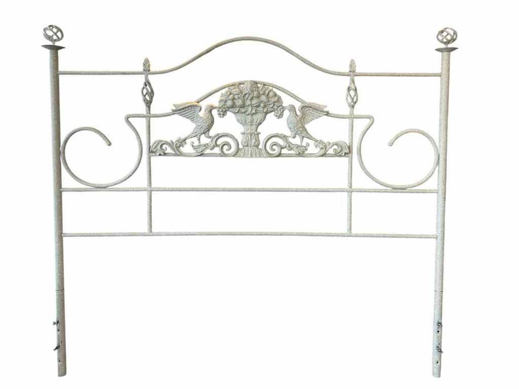 Ornate Off White Metal Queen Size Headboard - Headboard Only - 55.5" Tall x 62" Wide