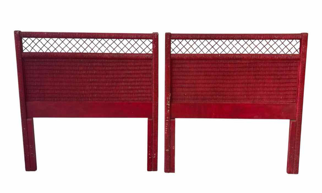 Set of 2 Wicker Twin Size Headboards - Painted Red - Headboards Only - 43.5" Tall x 41.5" Wide
