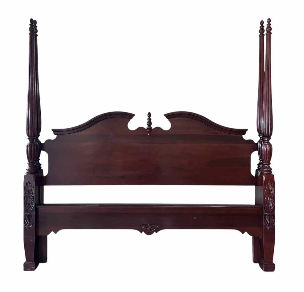 Kincaid Furniture Mahogany 4-Post Bed w/ Carved Details - Headboard, Footboard, Rails & Slats - 84" Tall x 82" Wide
