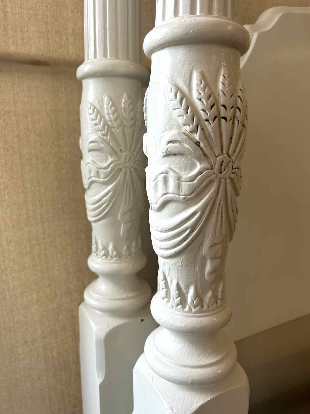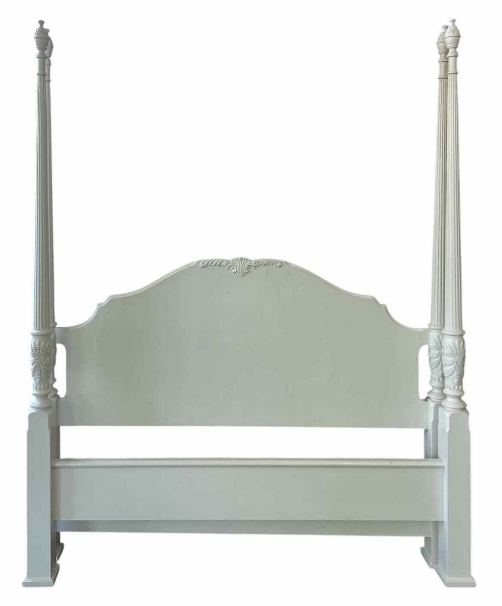 White Painted Queen Size 4-Post Bed - Headboard, Footboard, Rails - NO Slats - 82" Tall x 66" Wide