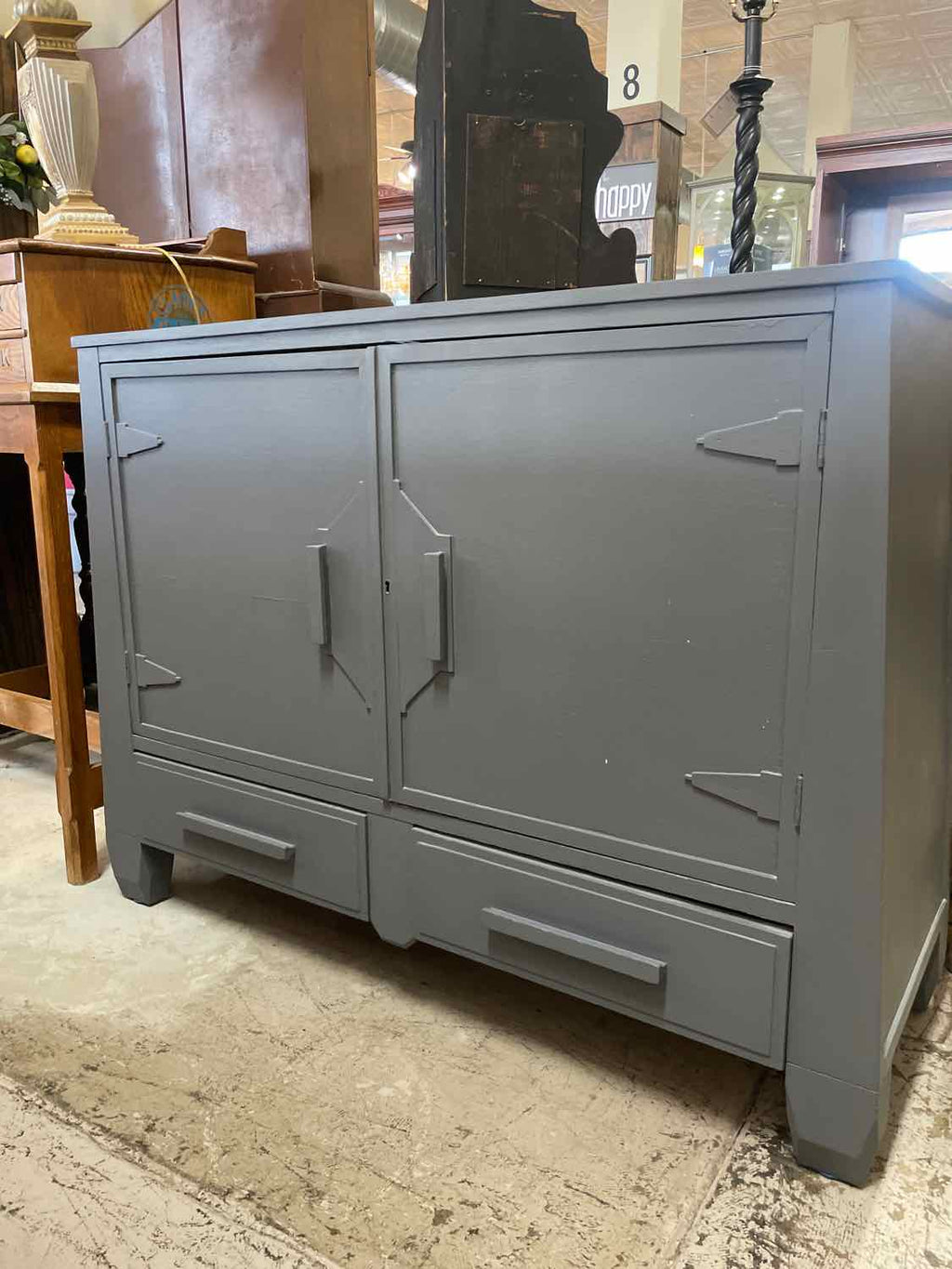 Vintage Buffet Painted Grey w/ 2 Doors & 2 Drawers - 36" Tall x 45" Wide x 17.5" Deep