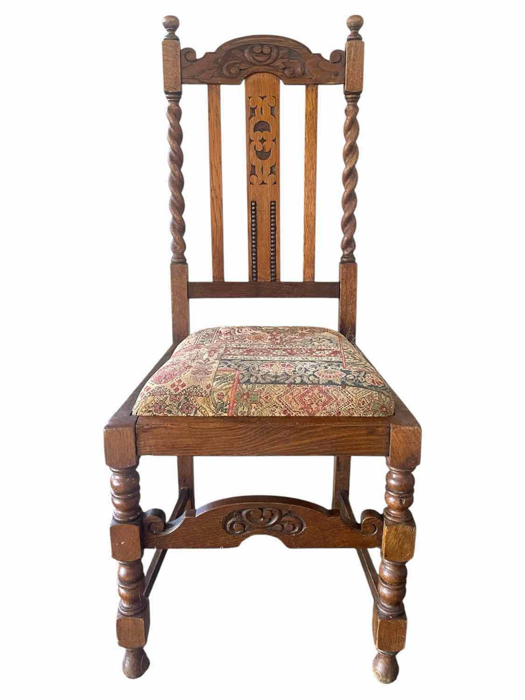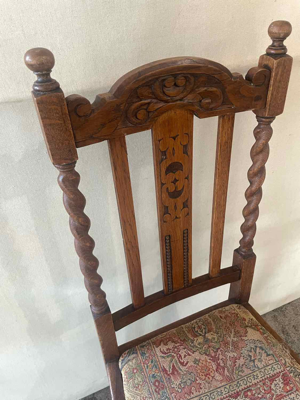 Antique Barley Twist Chair w/ Floral Upholstery - 42.5" Tall x 18" Wide x 16" Deep