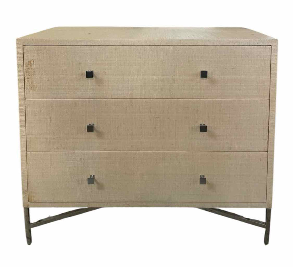 Williams Sonomoa Large 3-Drawer Chest of Drawers w/ Woven Finish & Chrome Base - Original Retail $1995 - Priced For Condition, Some Staining- 36.5" Tall x 42" Wide x 20" Deep