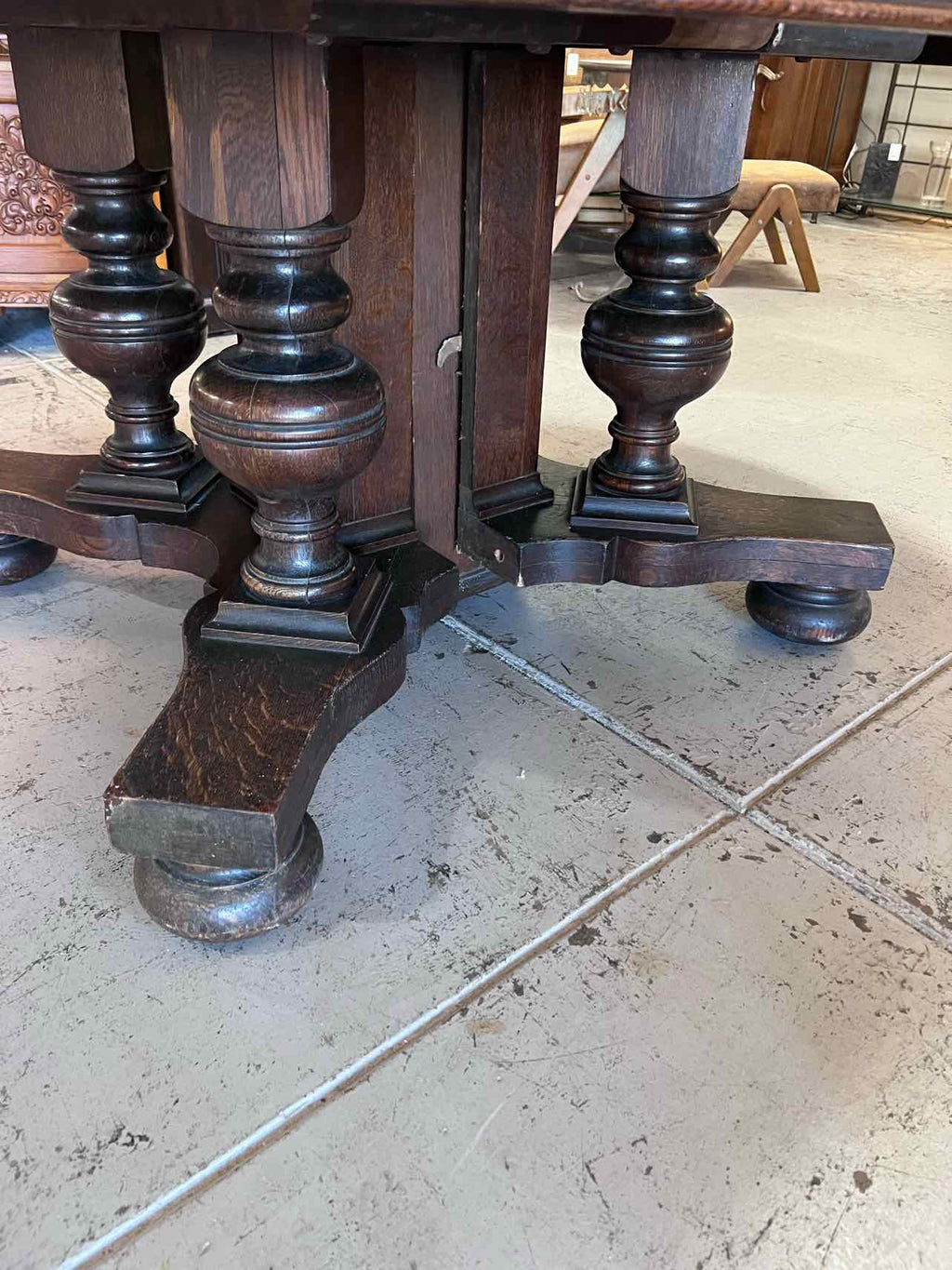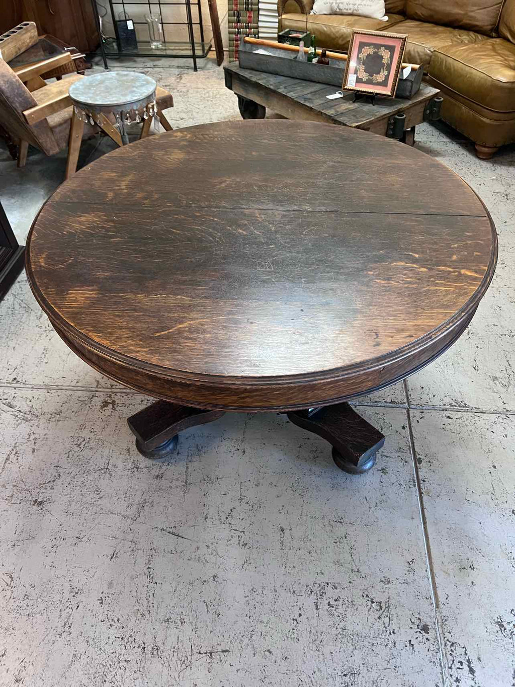 Dark Wood Antique Round Table W/ Pedestal Base & 2 Leaves - 31.5" Tall x 50" Wide + 2-9.5" Leaves