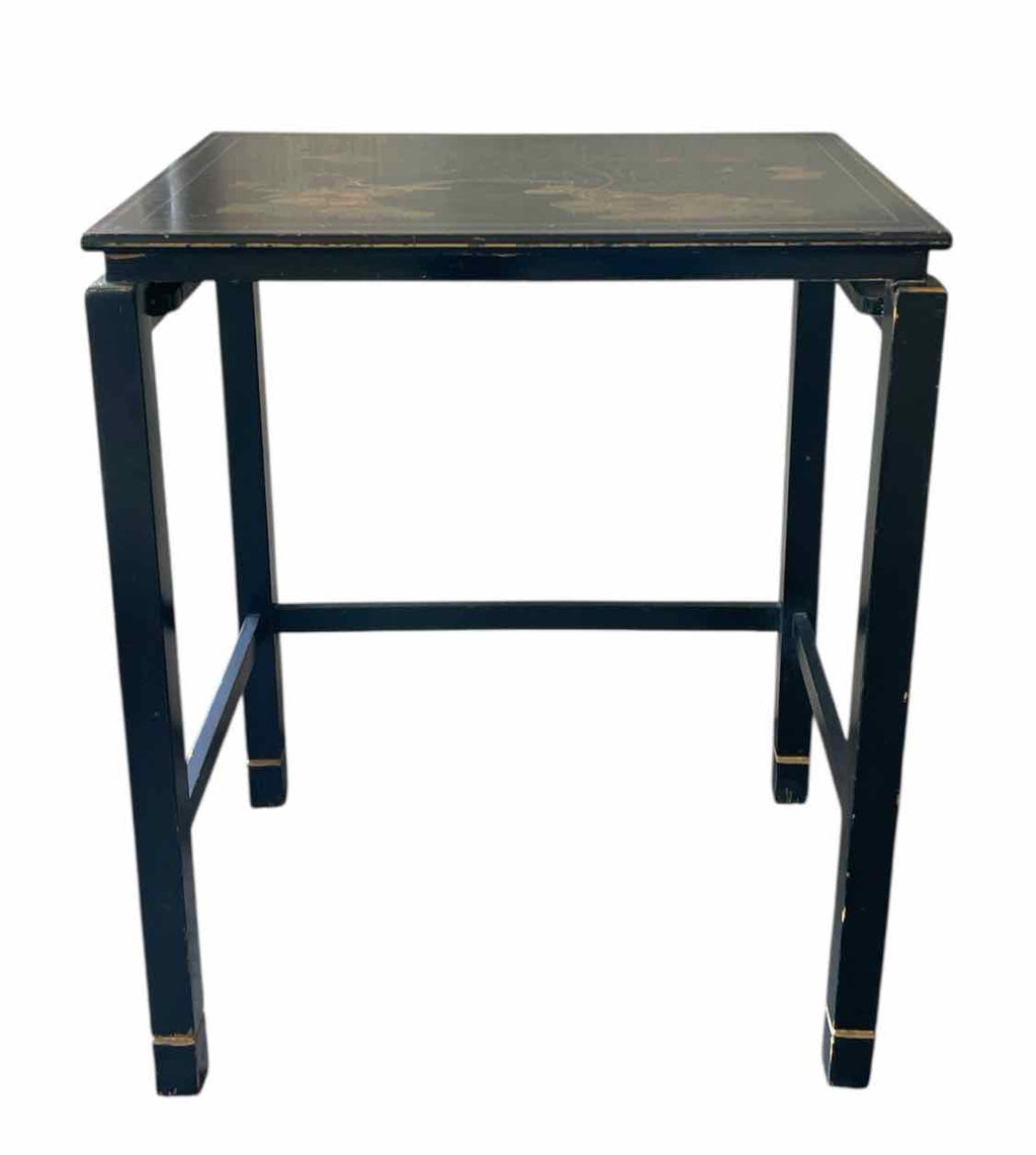Black End Table w/ Oriental Style Painting - 25.5" Tall x 21" Wide x 15" Deep