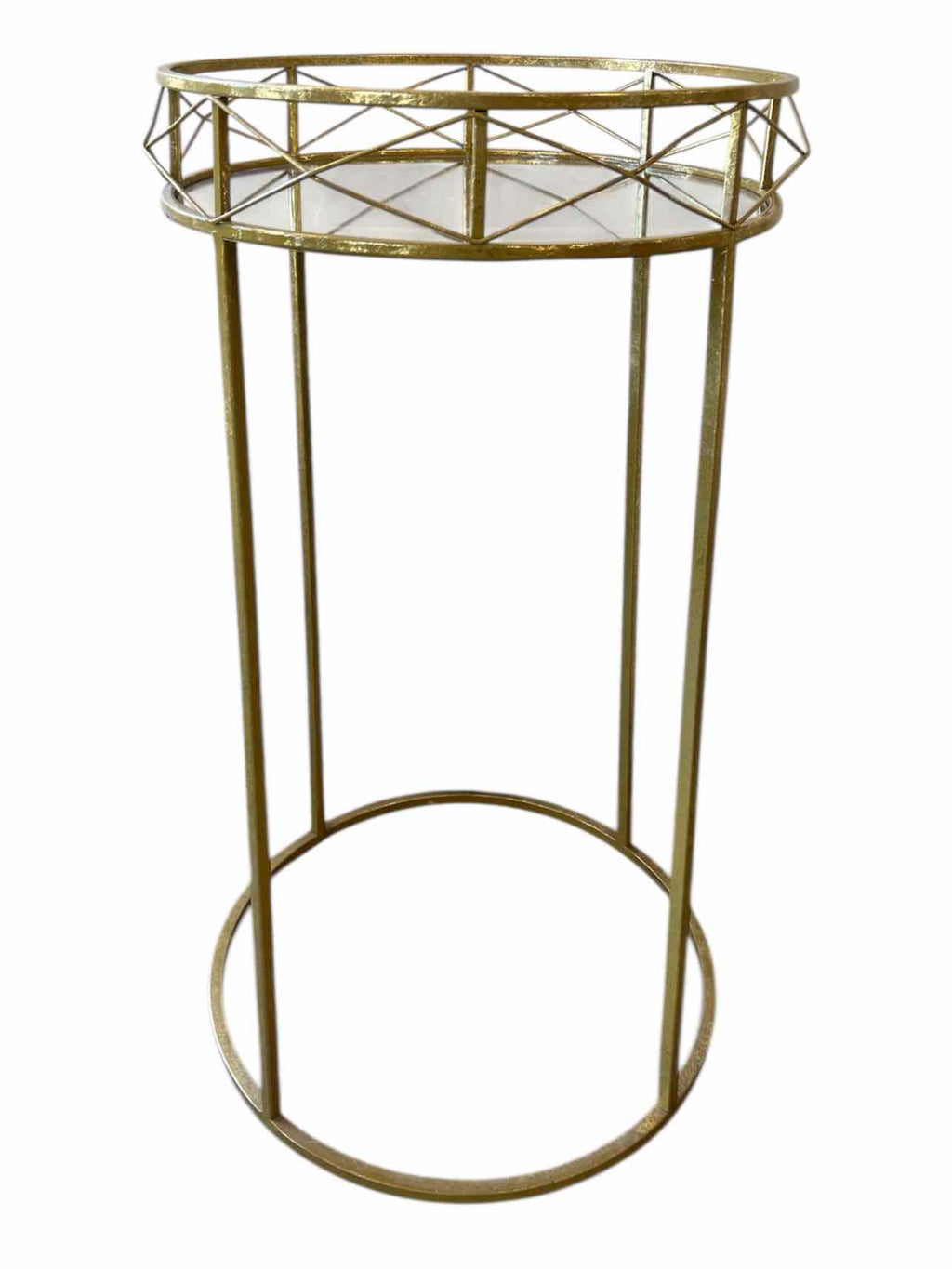 Gold Metal End Table w/ Mirror Glass Top - 27" Tall x 15" Wide
