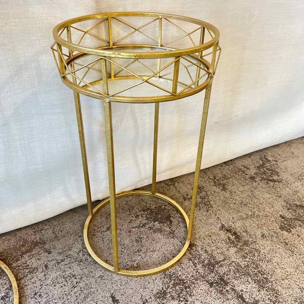 Gold Metal End Table w/ Mirror Glass Top - 22" Tall x 12" Wide