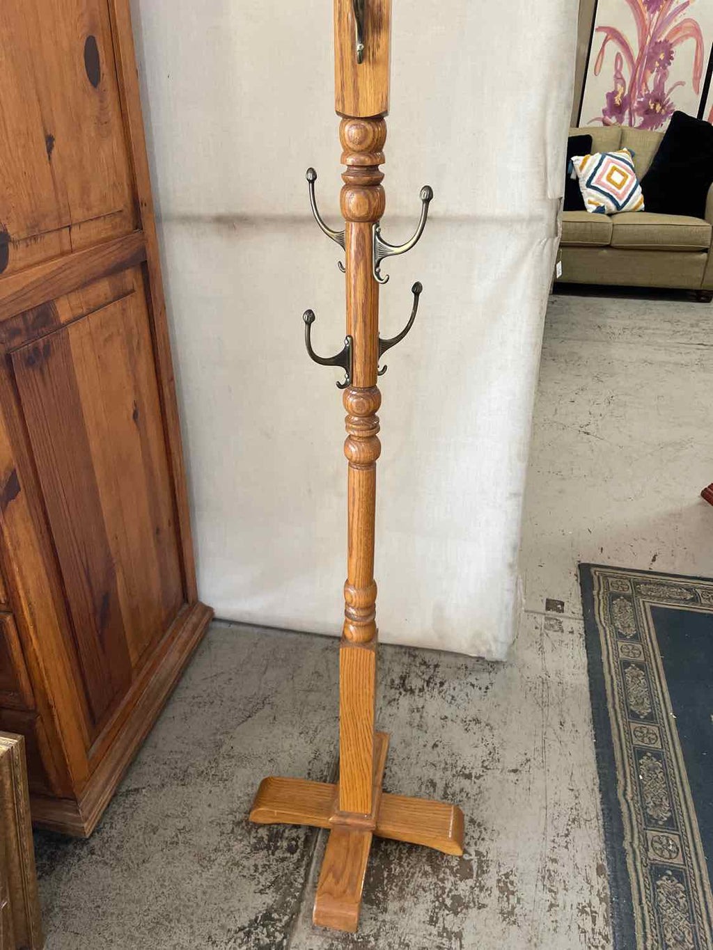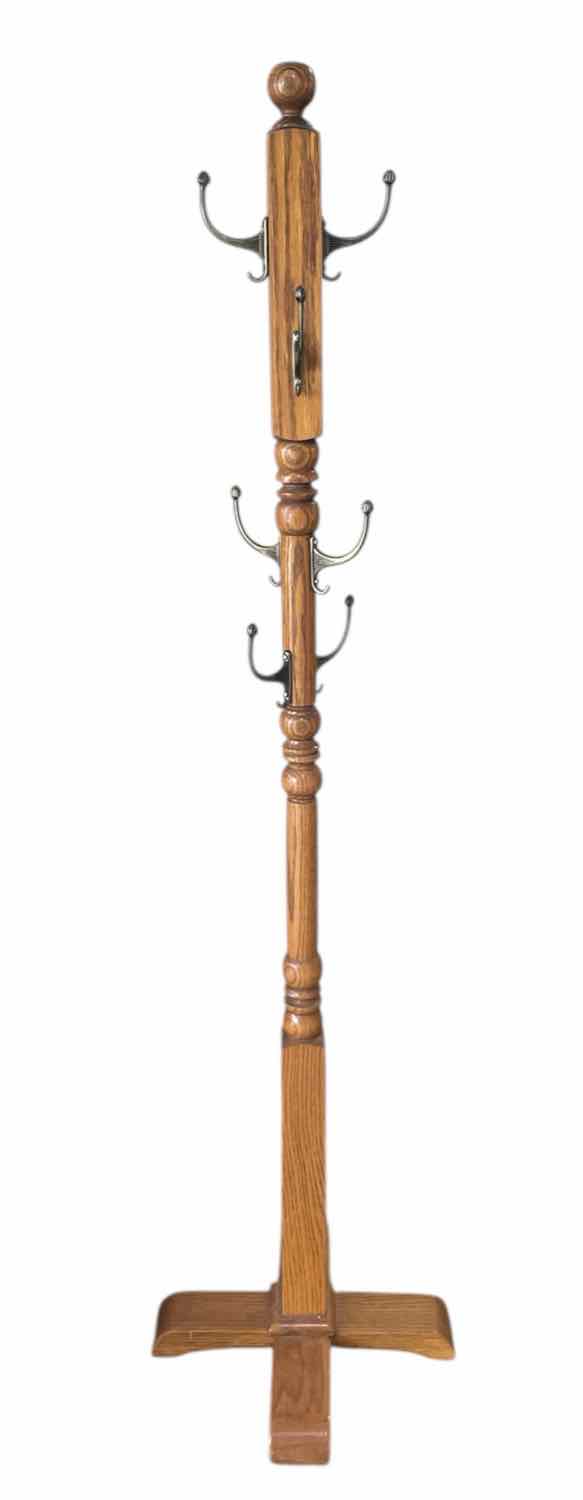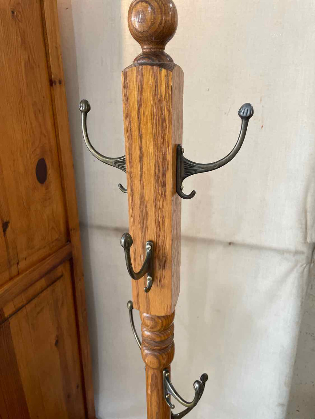 Vintage Solid Wood Hall Tree w/ 8 Double Hooks - 63.5" Tall