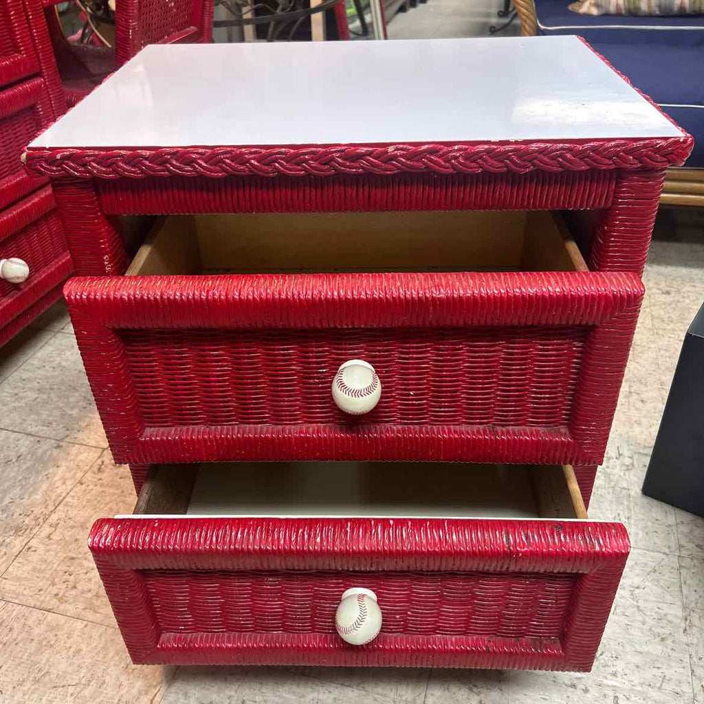 Red Painted Wicker 2 Drawer Nightstand - 24" Tall x 24" Wide x 17" Deep