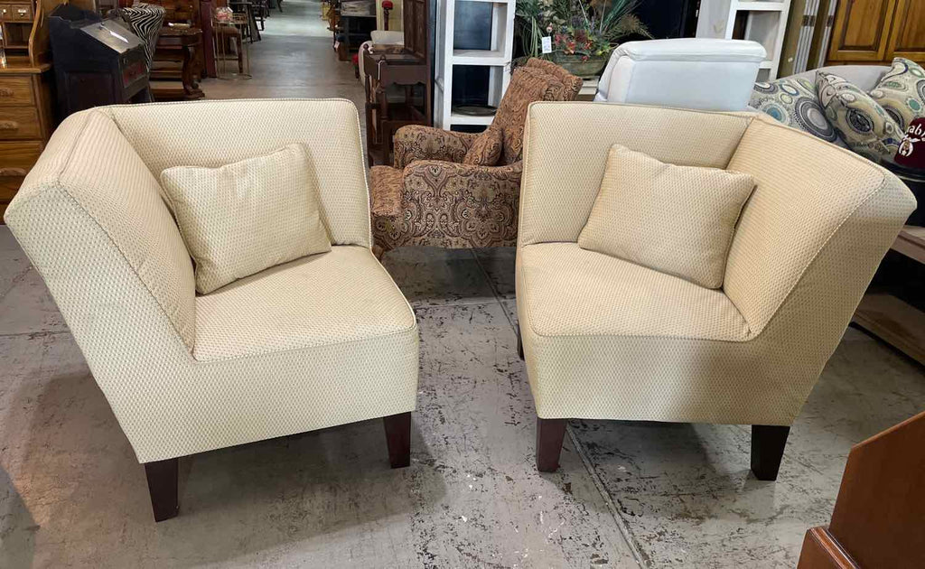 Set of 2 Upholstered Corner Occasional Chairs / Love Seat - Each Measures 35" Tall x 29" Wide x 32" Deep