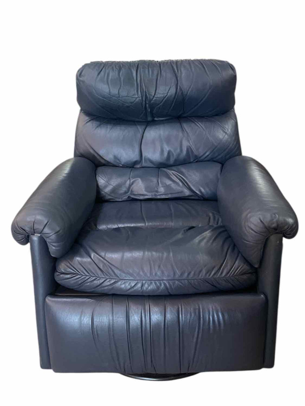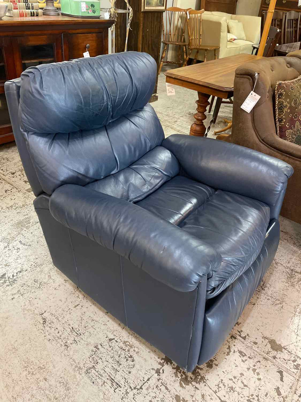 Blue Leather Swivel Rocker Recliner - Priced For Condition, Some Wear - 36" Tall x 34" Wide x 35" Deep