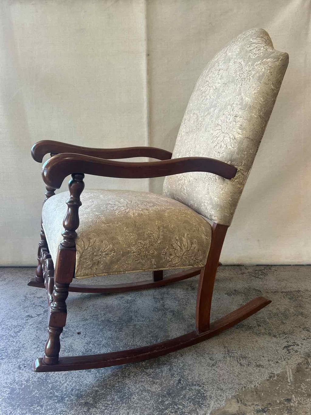 Antique Wood Framed Upholstered Rocking Chair - 40" Tall x 24" Wide x 32" Deep