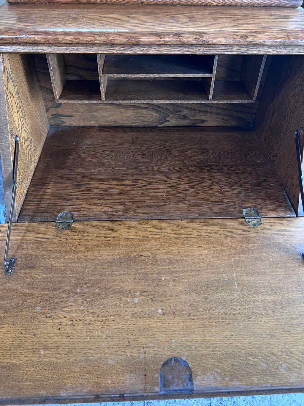 Petite Oak Drop Front Secretary w/ 1 Drawer - Priced For Condition, Unstable- 40" Tall x 26.5" Wide x 14.5" Deep