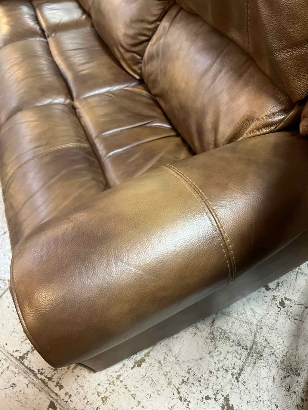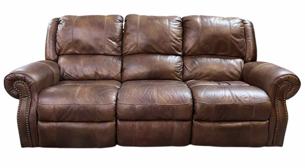 Brown Leather 3-Cushion Manual Reclining Sofa - Some Scratches - 40" Tall x 91" Wide x 39" Deep