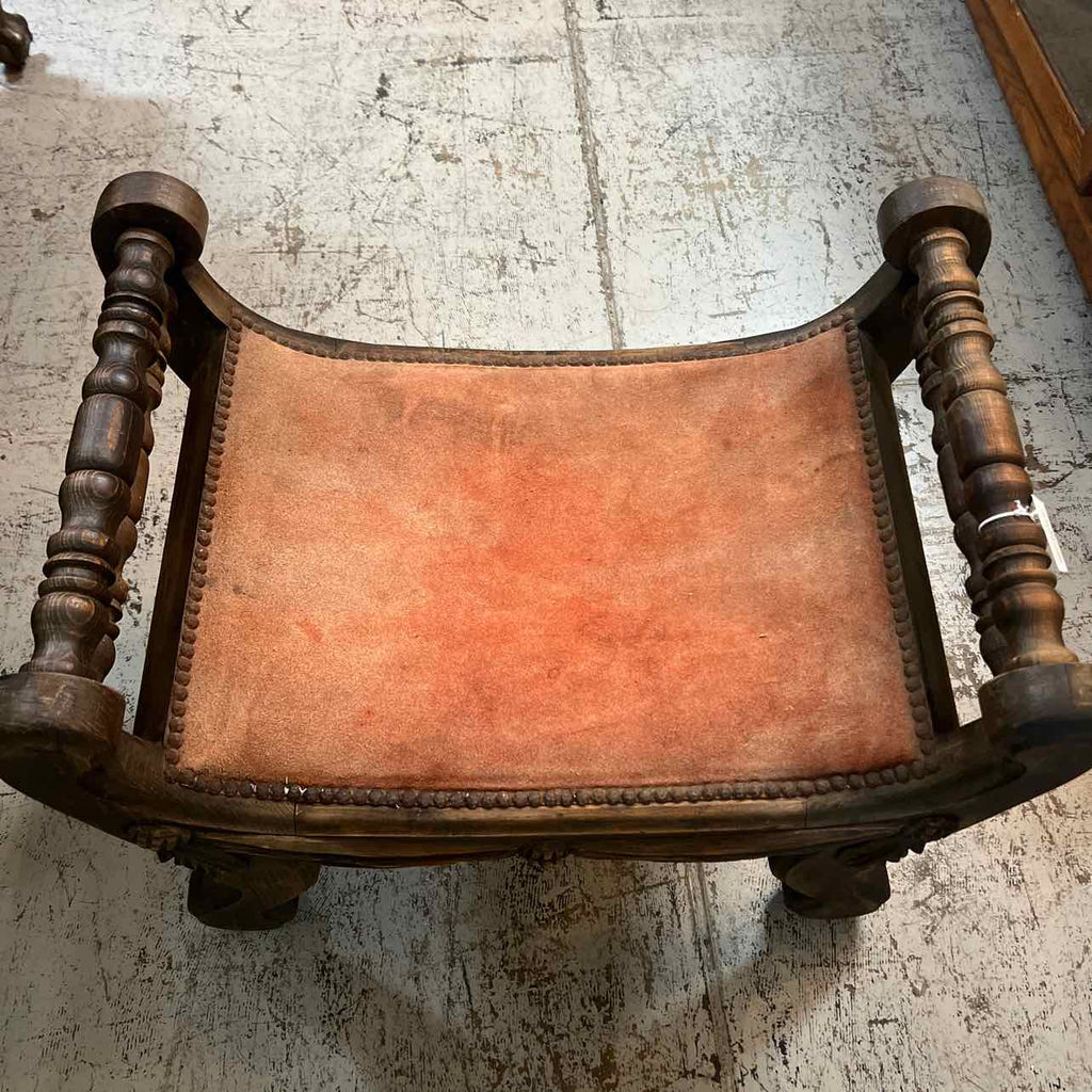 Antique Stool w/ Suede Upholstery & Nailhead Trim - Priced for Condition - 23" Tall x 26" Wide x 18" Deep